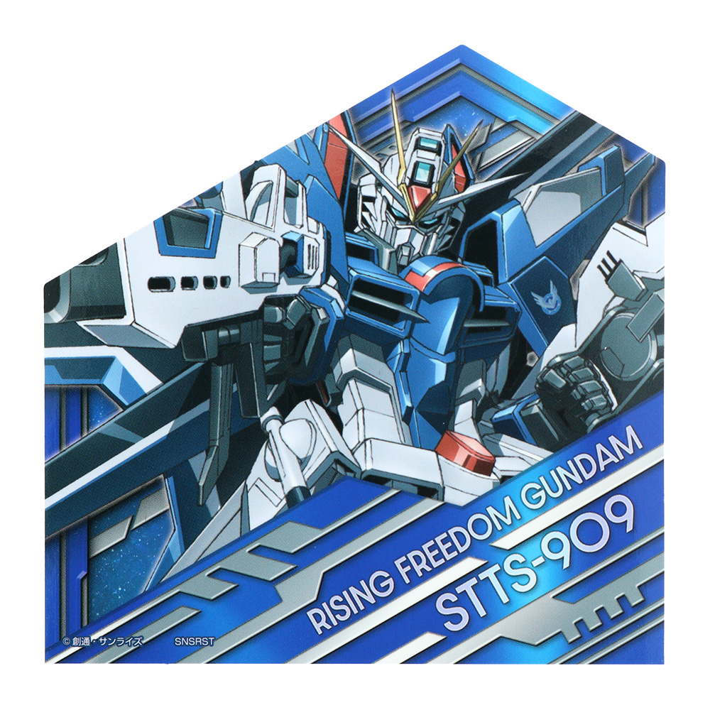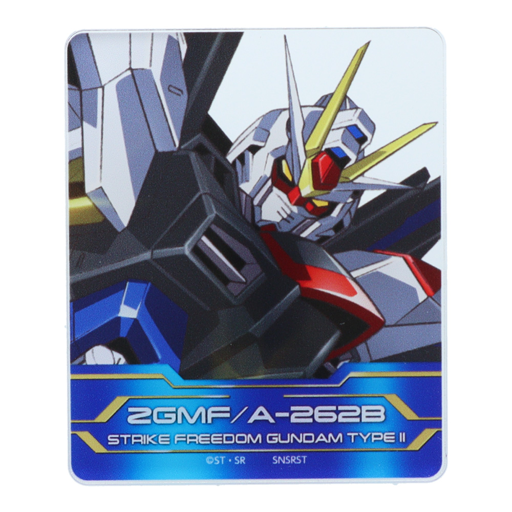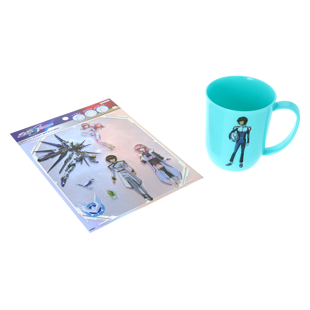 2人のアートと共に「ストライクフリーダムガンダム弐式」や鳥型のペットロボット「トリィ」と「ブルー」のほか「コンパス」のエンブレムがセットになっています。