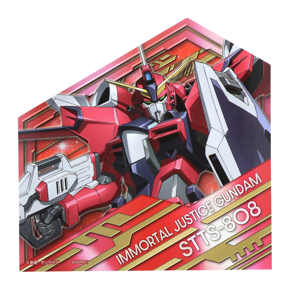 上半身をアップでプリントした「イモータルジャスティスガンダム」の全8種からいずれか1種が入っています。