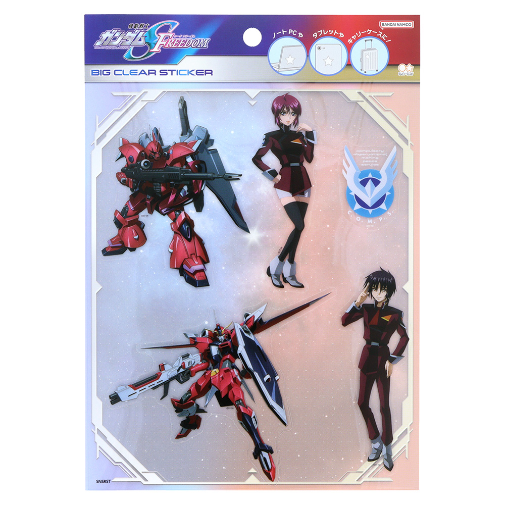 キャラクターやモビルスーツ、エンブレムなどを組み合わせたビッグクリアステッカー。