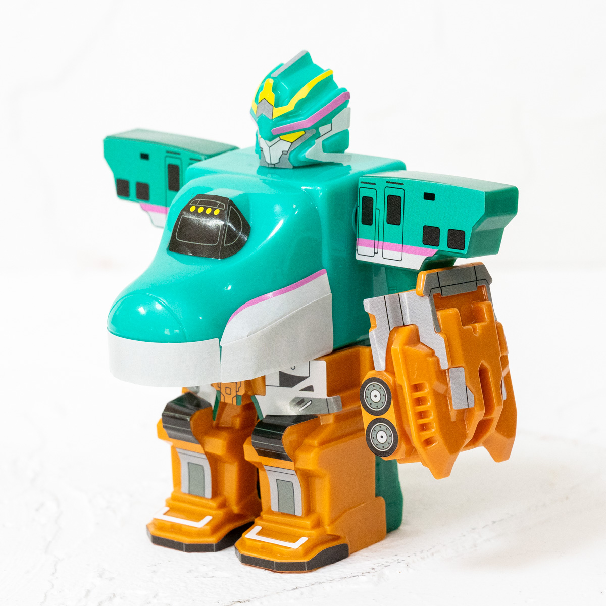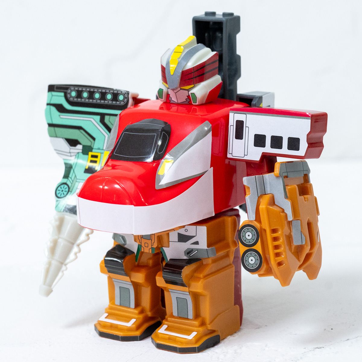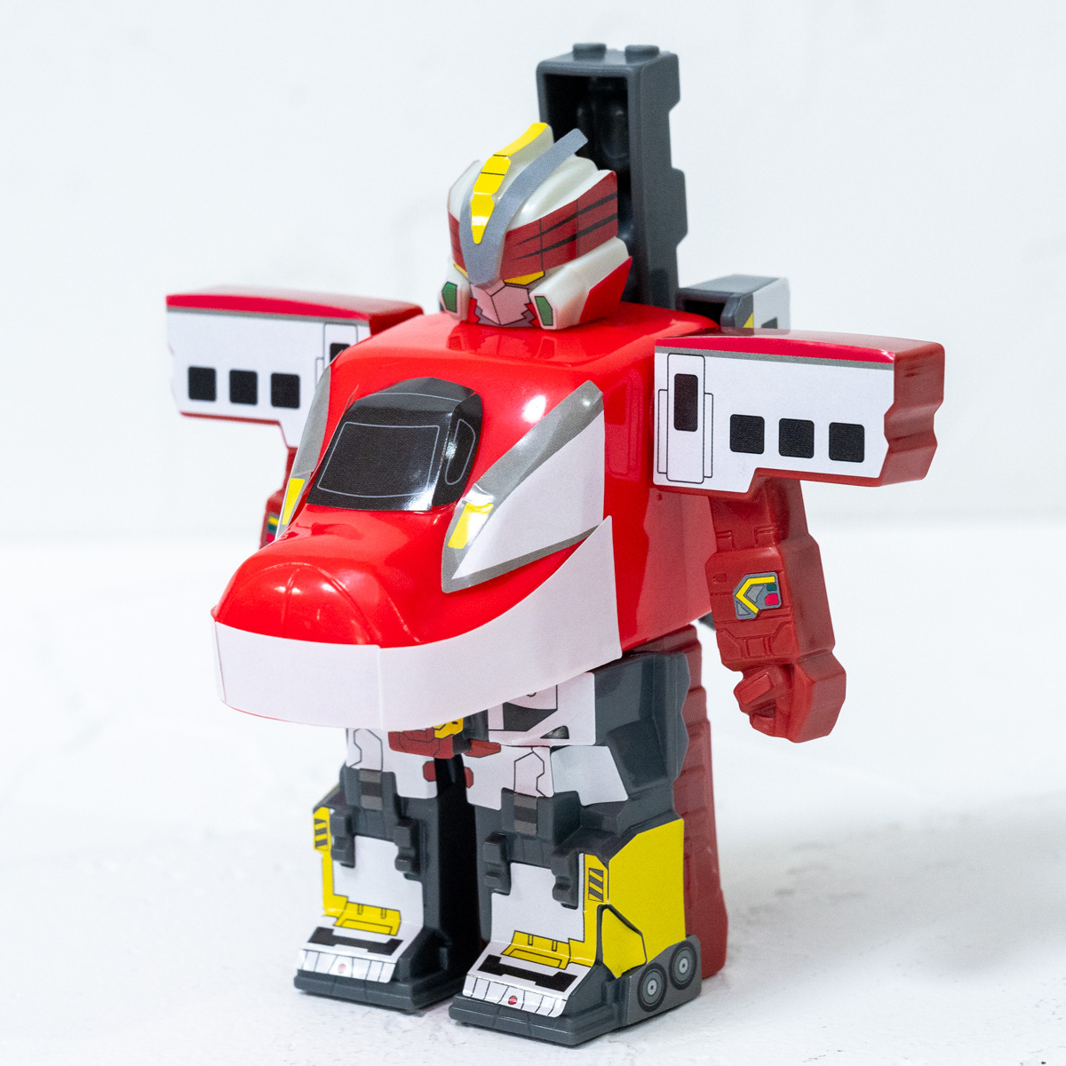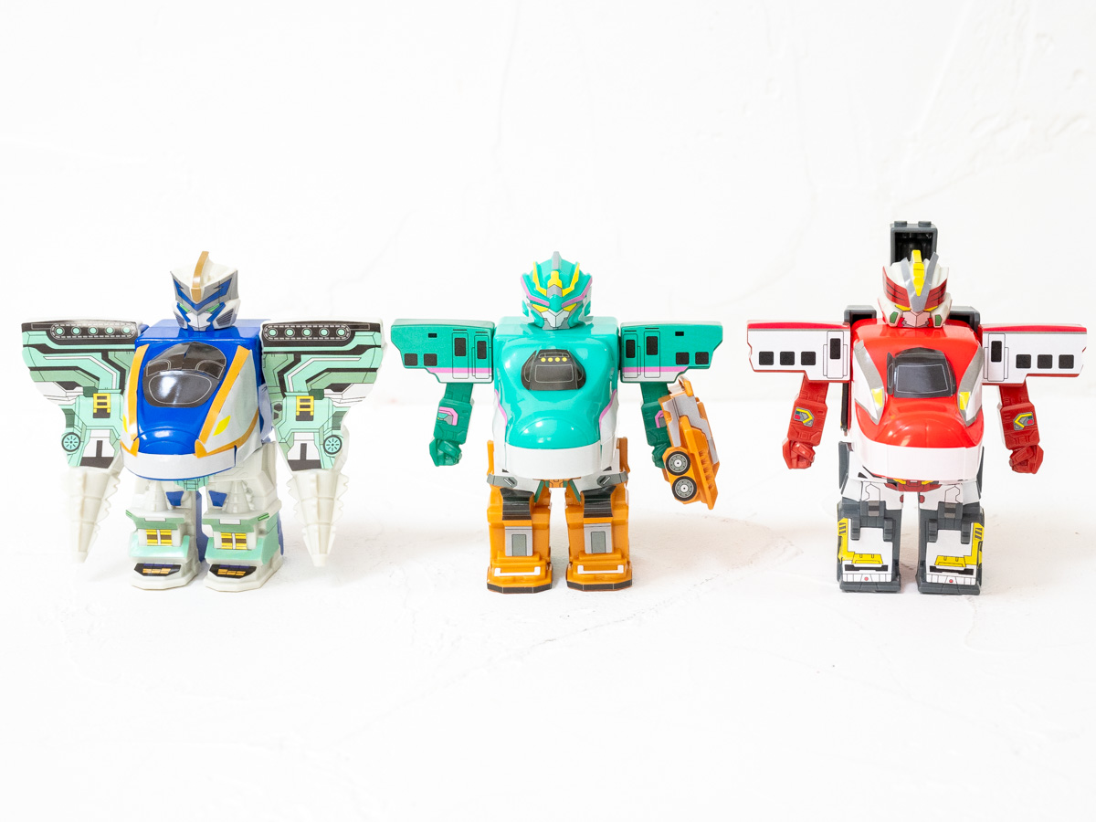 取り外し可能なパーツを合体させ、新幹線からロボットへの進化もできるおもちゃです!