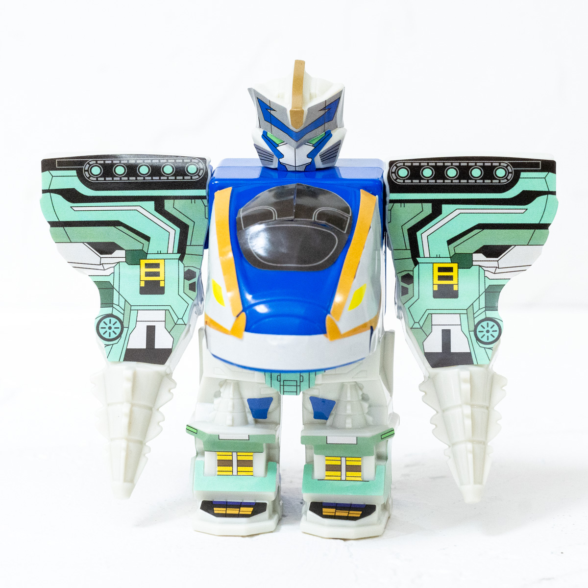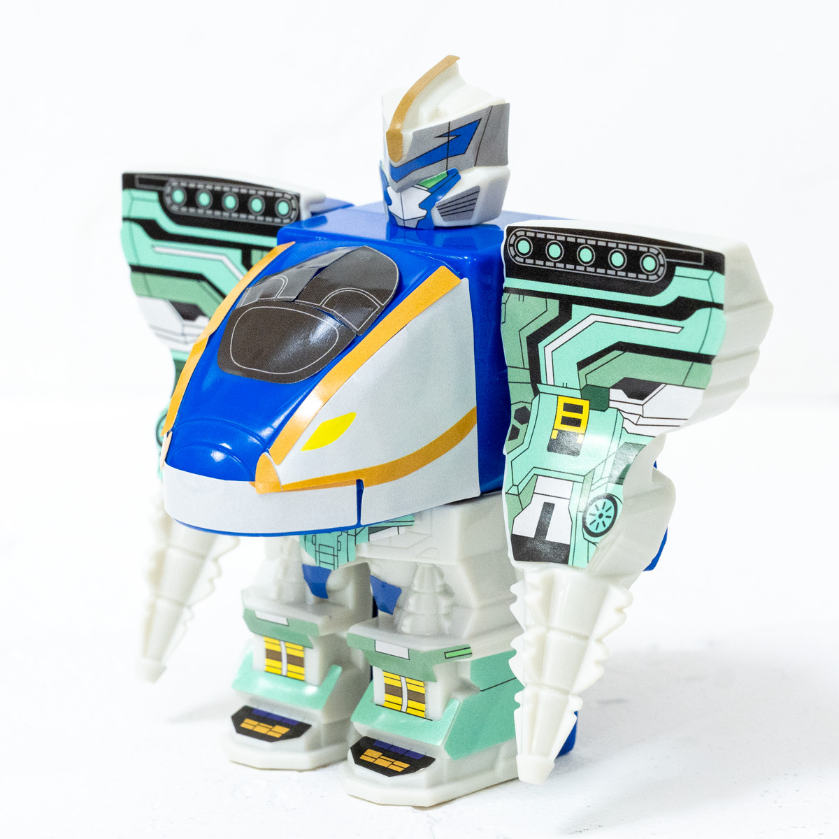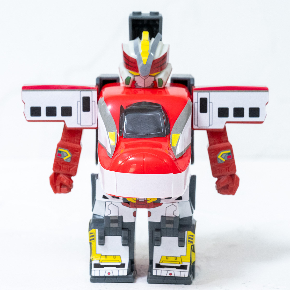 取り外し可能なパーツを合体させ、新幹線からロボットへの進化もできるおもちゃです!