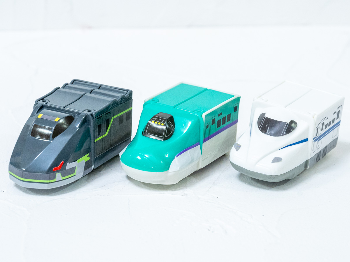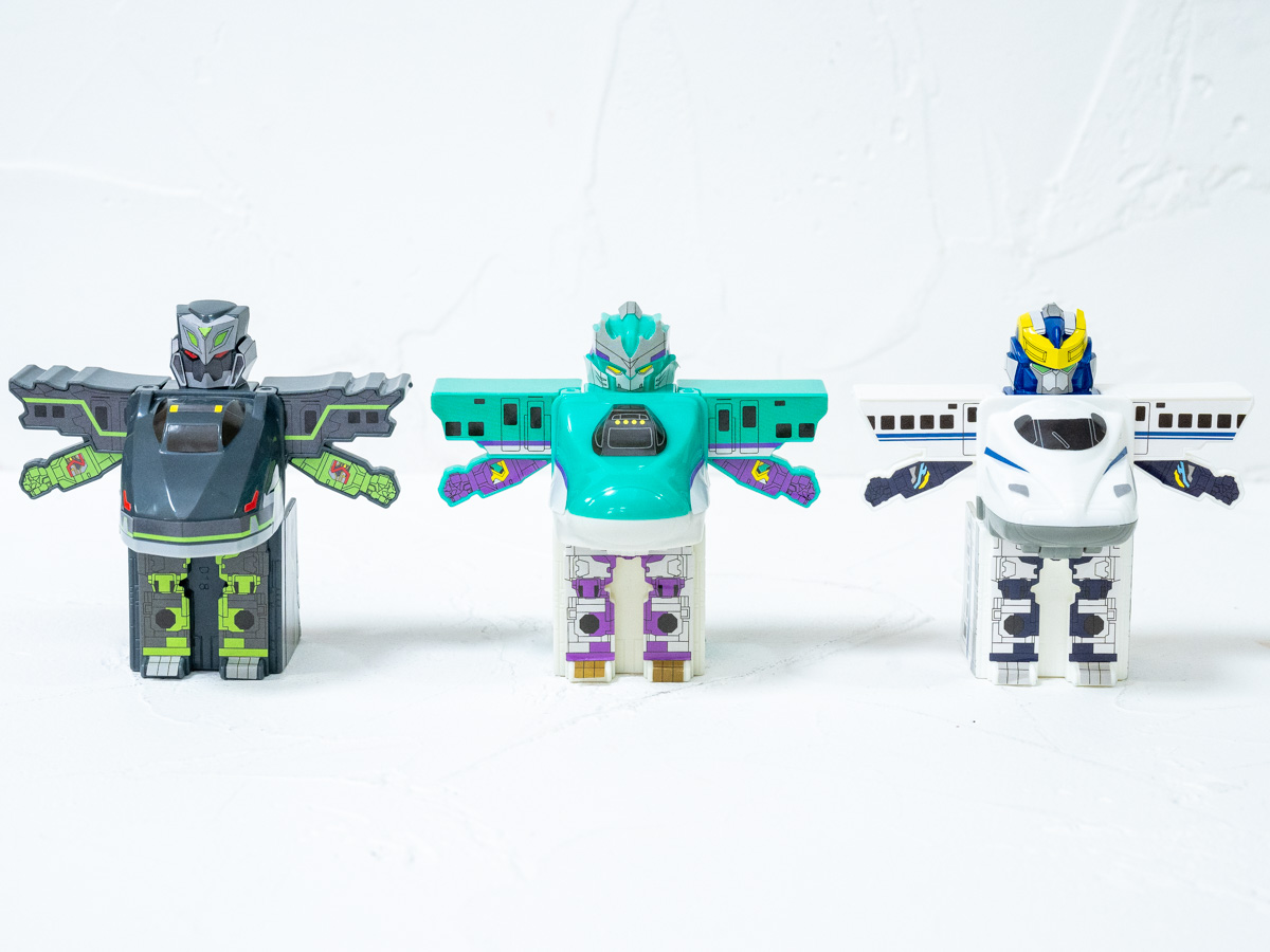 車両を走らせて遊べるほか、「シンカリオン」への変形も楽しめるおもちゃ全3種類がラインナップされています。