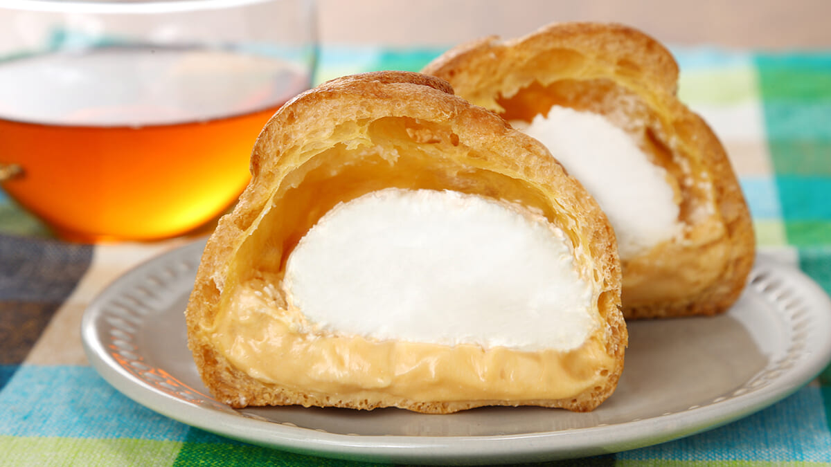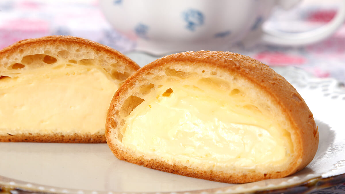 ぷにっとした食感の生地にプリン風味のクリームがたっぷり楽しめます。