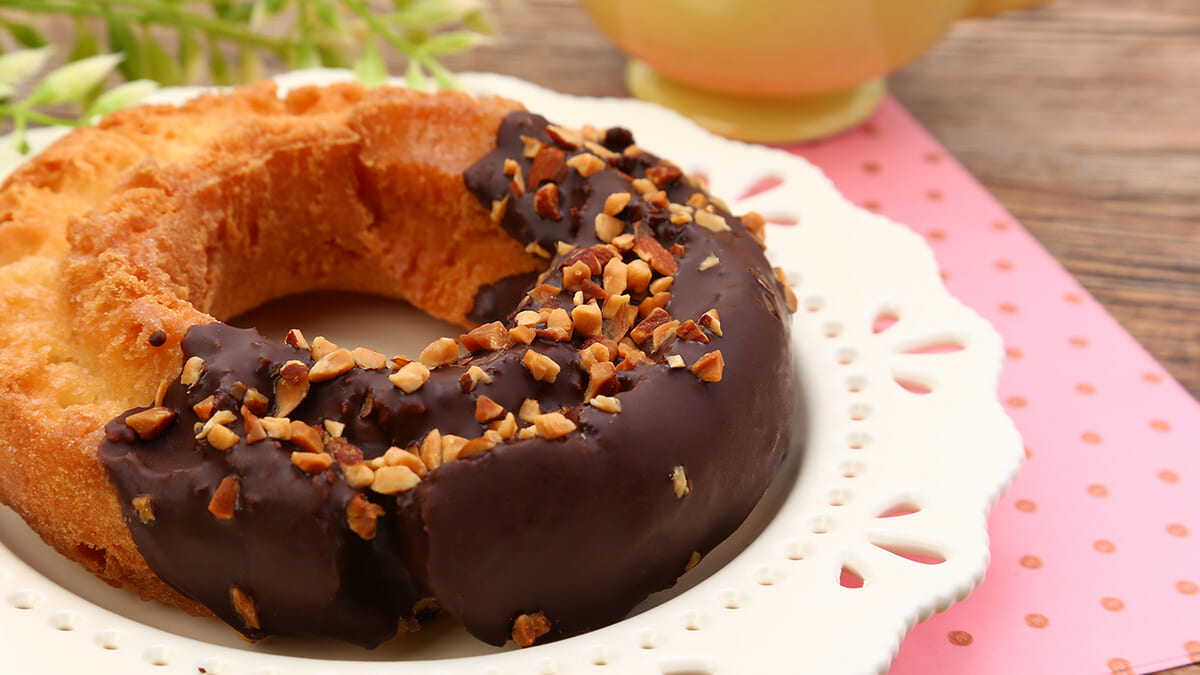 定番の「オールドファッションドーナツ」は、たっぷりのチョコとローストアーモンドをトッピング。