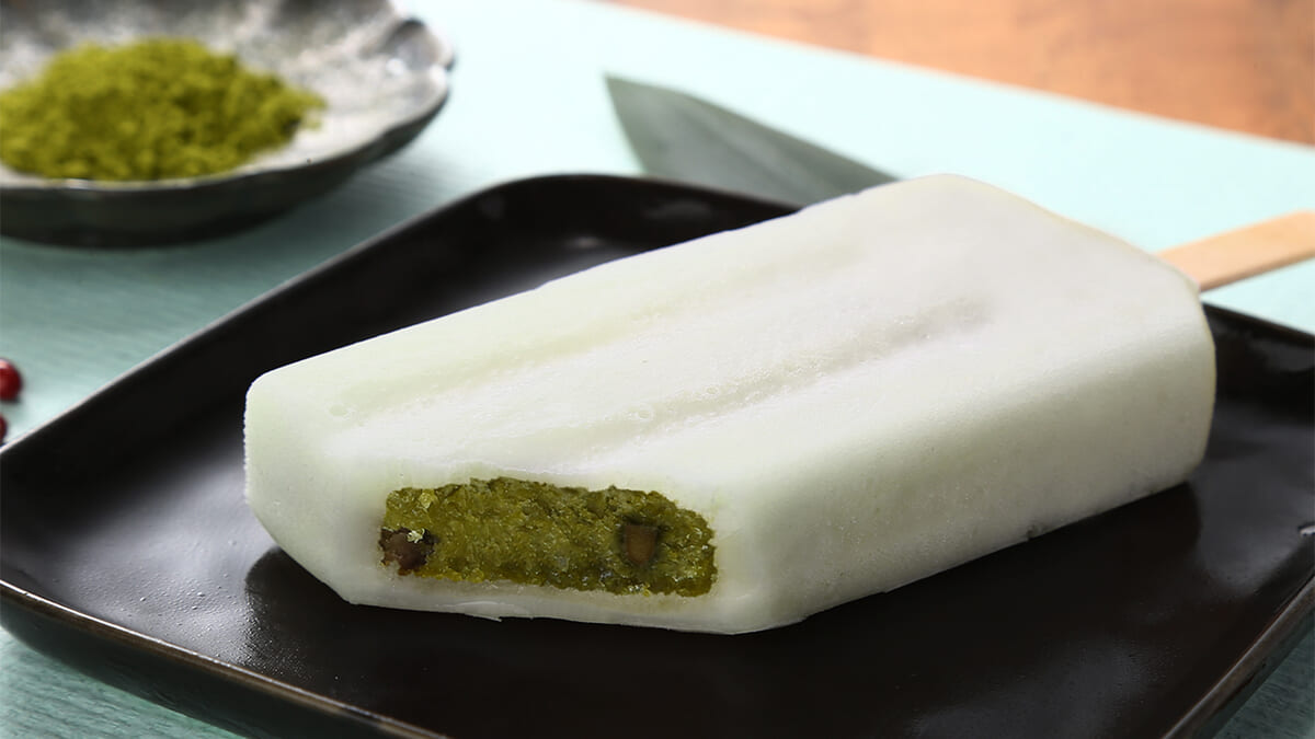 抹茶れん乳金時はコク深い宇治抹茶を使い、抹茶氷を練乳風味の氷で包まれています。