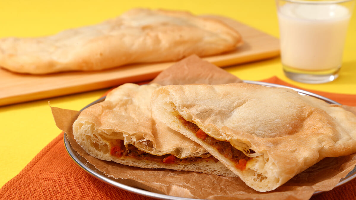 ナンに、スパイシーでコクのあるカレーを包み焼いた「カレーを包んだナン」
