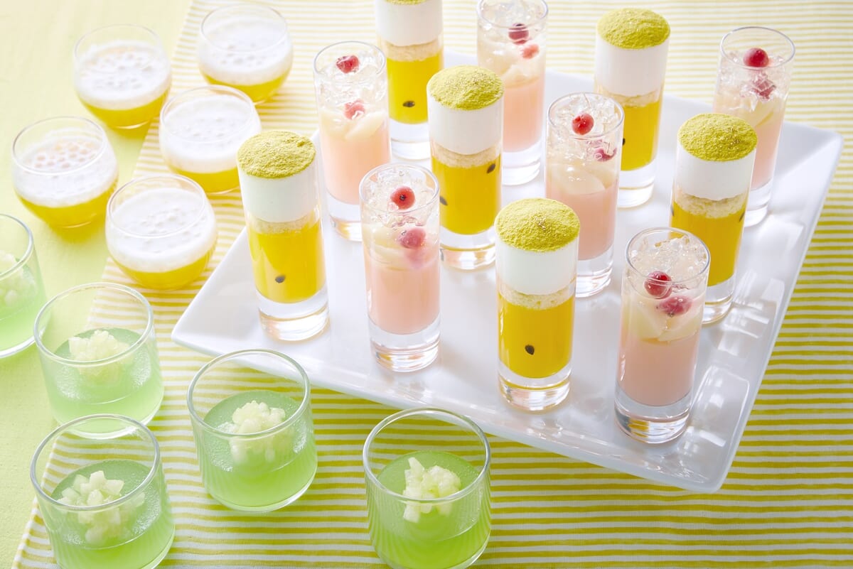 定番のいちごショートケーキ、メロンやピーチのジュレのほか、「ピエール・エルメ・パリ」のスイーツも登場(大阪のみ)し、夏休み限定ビュッフェを盛り上げます。