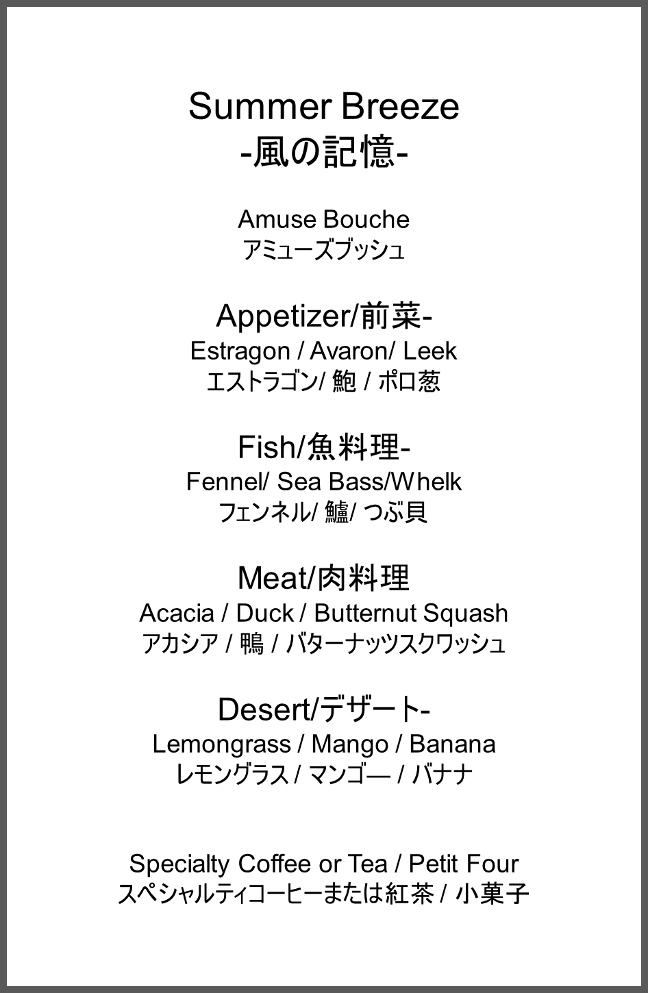 ディナープログラム「Summer Breeze-風の記憶-」