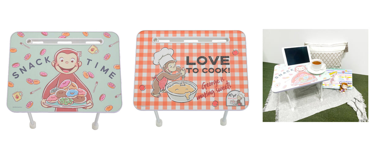 「ジョージ」の「ぽってりマスコット」のほか、「折りたたみテーブル」や「お絵かきセット」などの、日常使いにも便利なかわいいグッズがラインナップされています☆