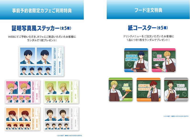 事前予約者限定カフェ利用特典「証明写真風ステッカー」/ドリンク注文特典「オリジナル紙コースター」