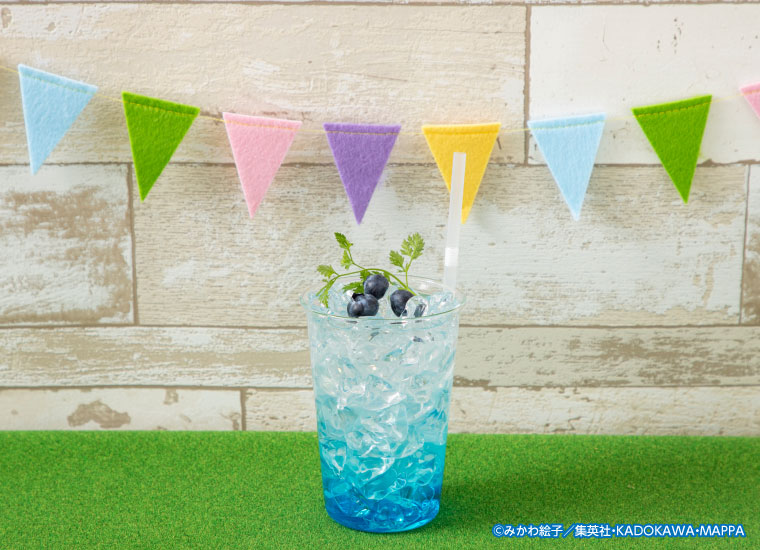「藤堂葵」をイメージしたソルティマスカットソーダには、スライスしたキウイがトッピングされています。