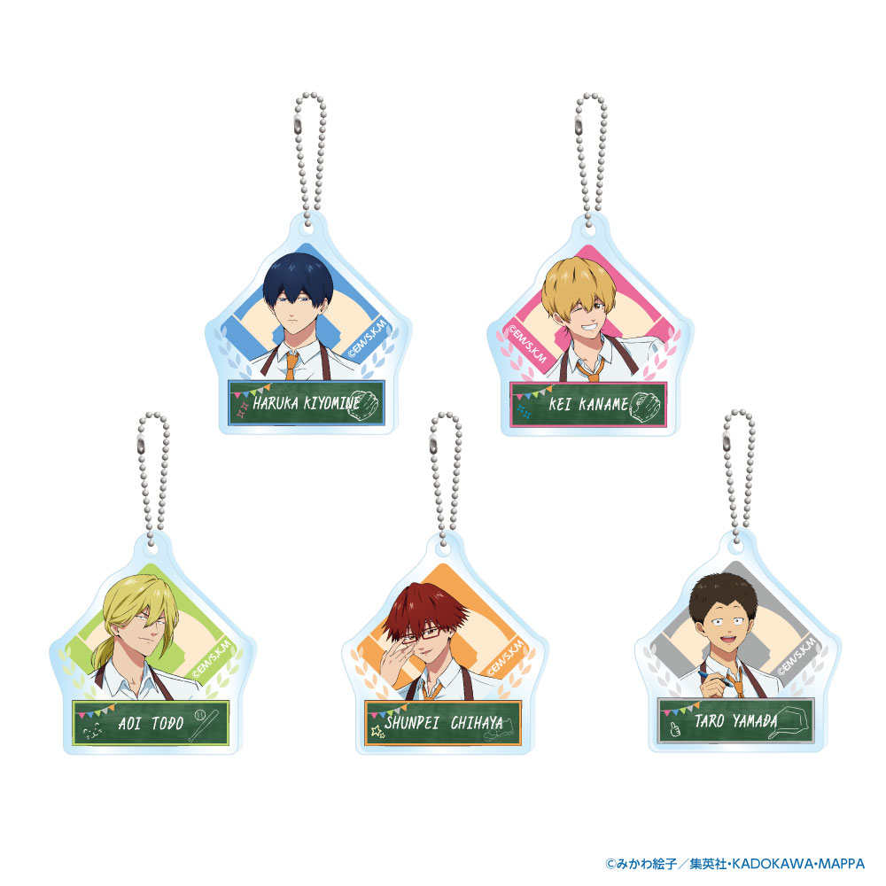 「清峰葉流火」や「要圭」たちのお顔をアップでプリントしたアクリルキーホルダー。