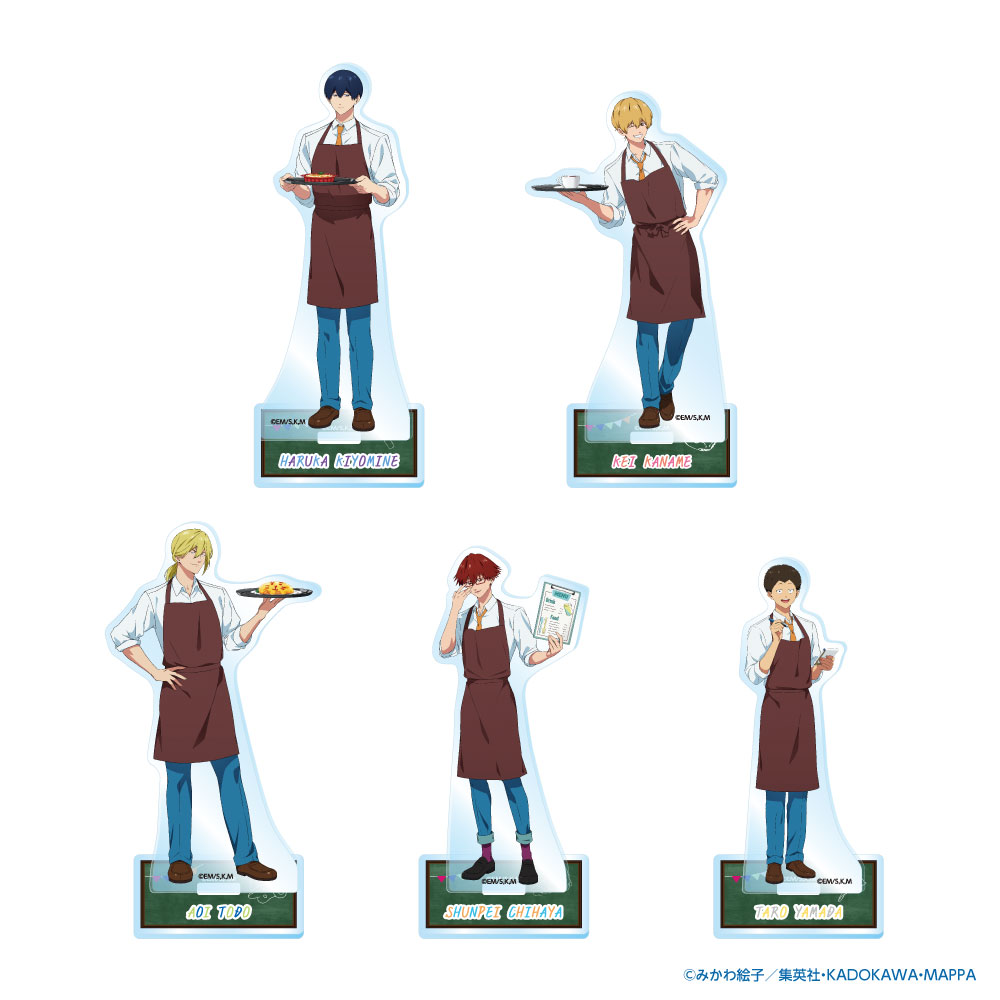 学園祭でカフェ店員として働くメンバーたちを描いたアクリルスタンド。