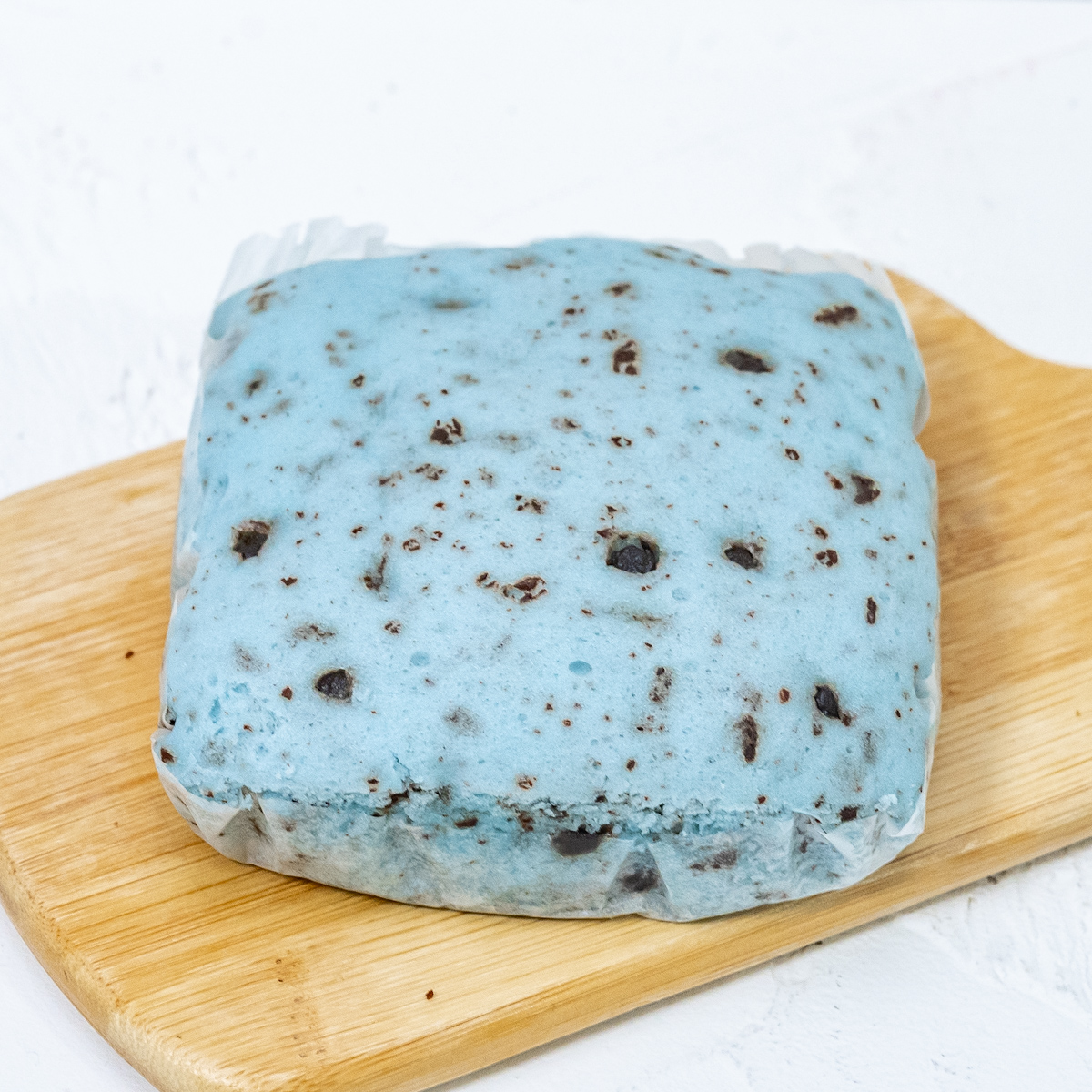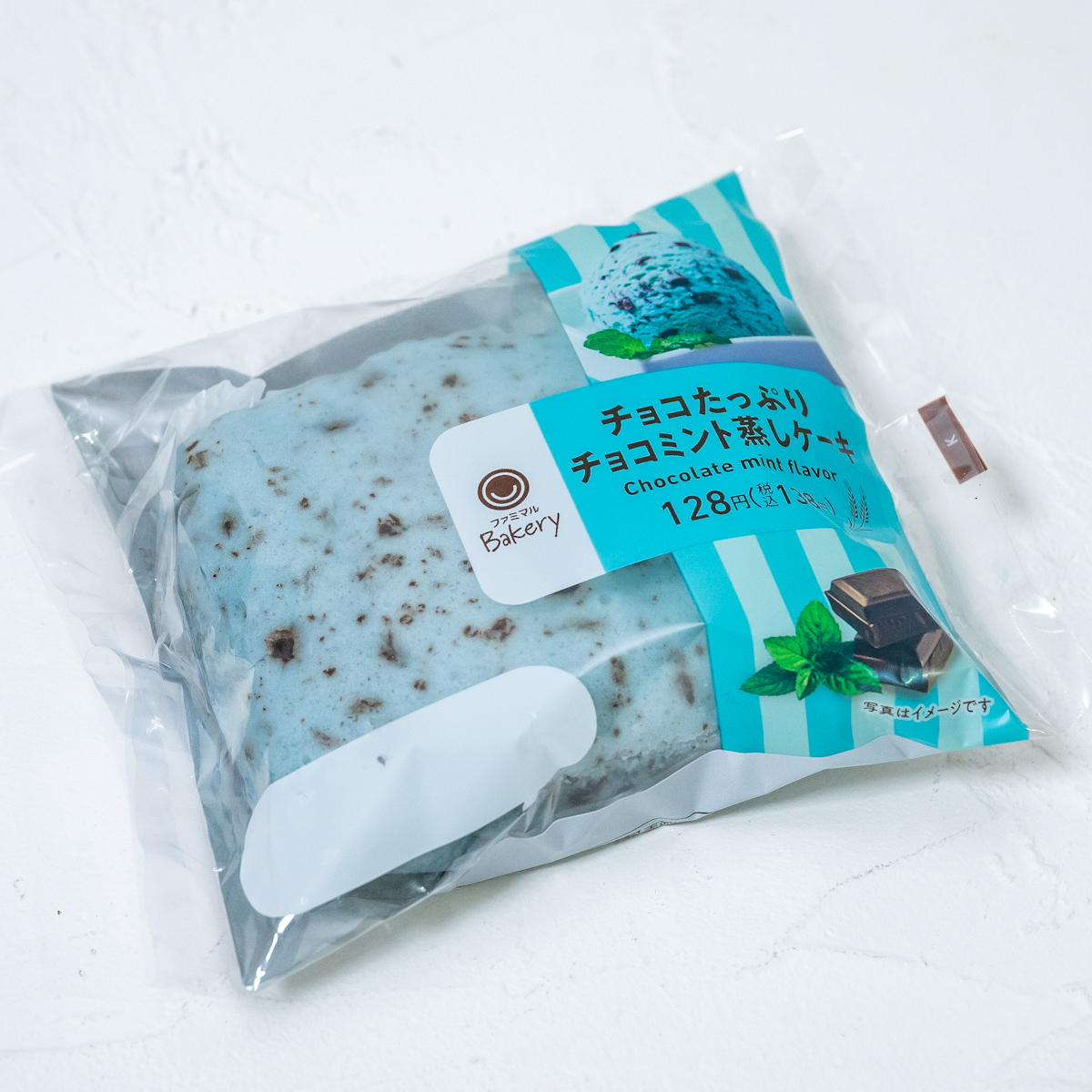 ミント生地に3種のサイズの異なるチョコをたっぷり練り込んだ「チョコたっぷりチョコミント蒸しケーキ」