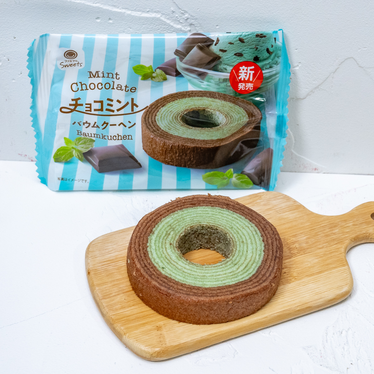 チョコレートとミント2色の生地が楽しめる、ふんわり食感のバウムクーヘン。