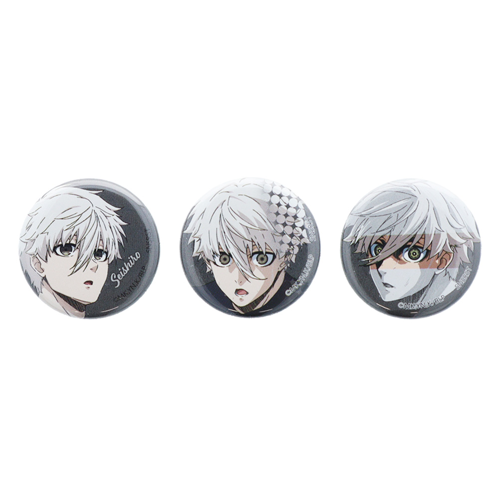 「潔世一」の笑顔や横顔、迫力満点な表情を描いたプチ缶バッジ。