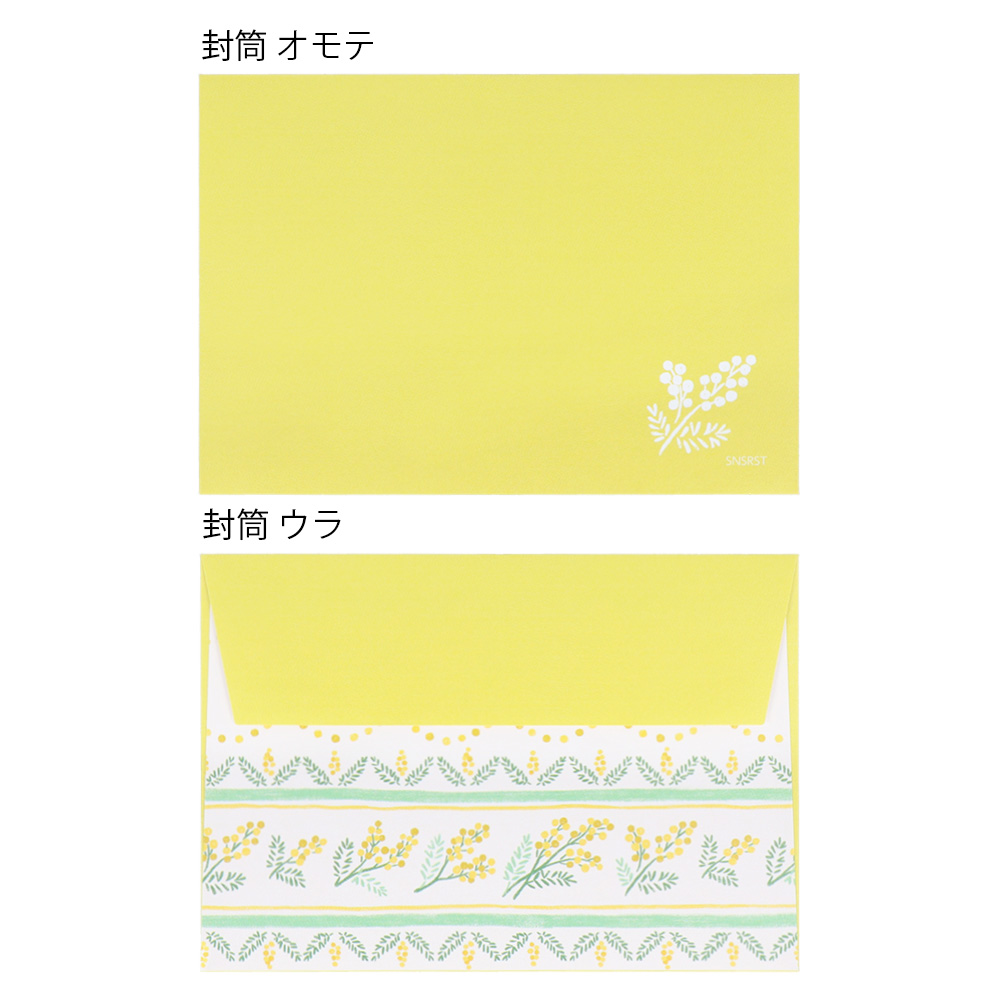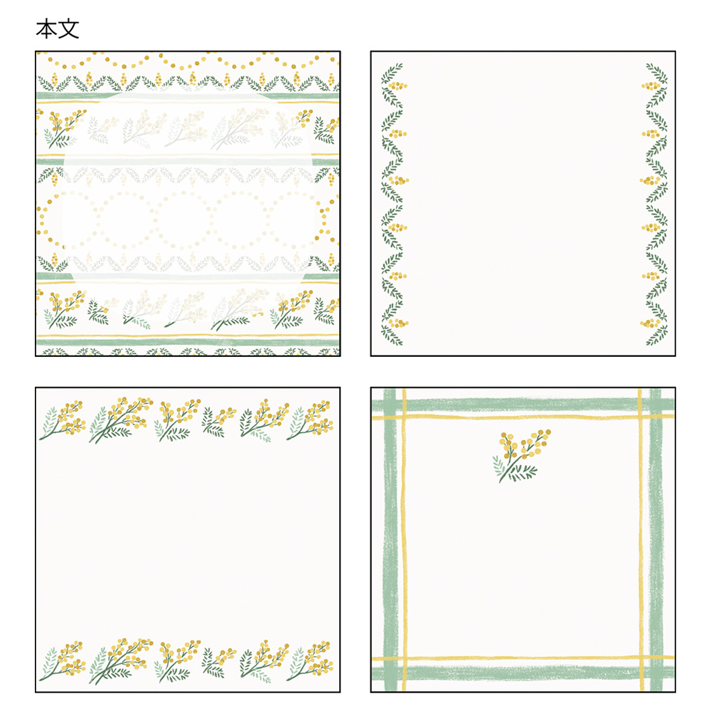 ミモザの花をたっぷり使った、温かみを感じるミニレターセット。