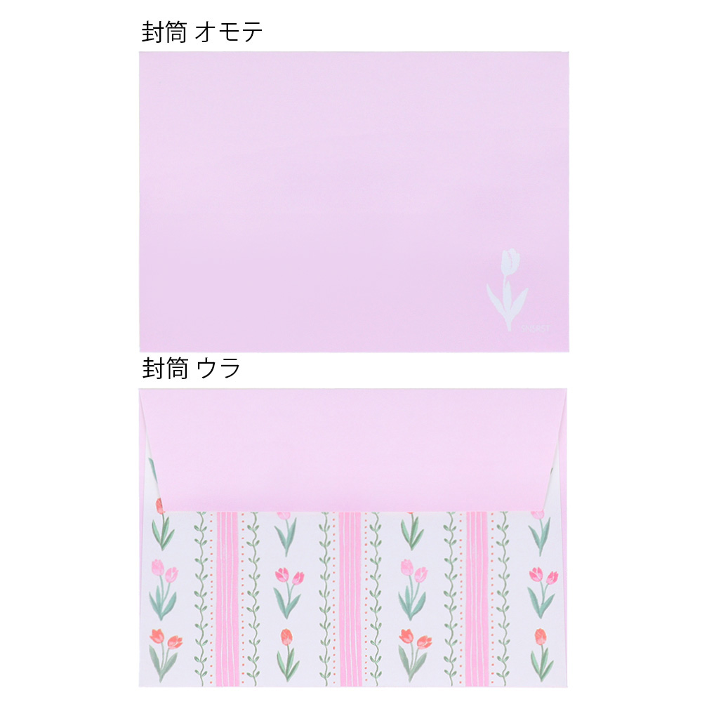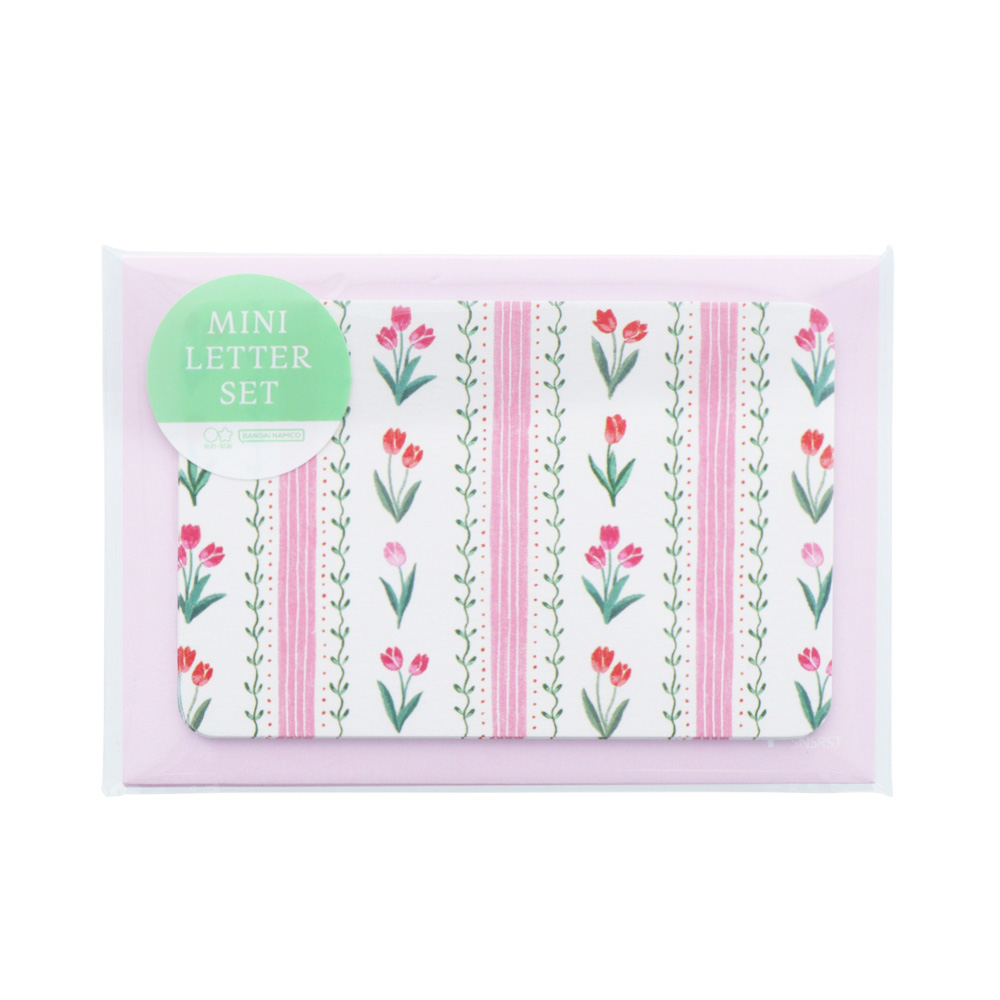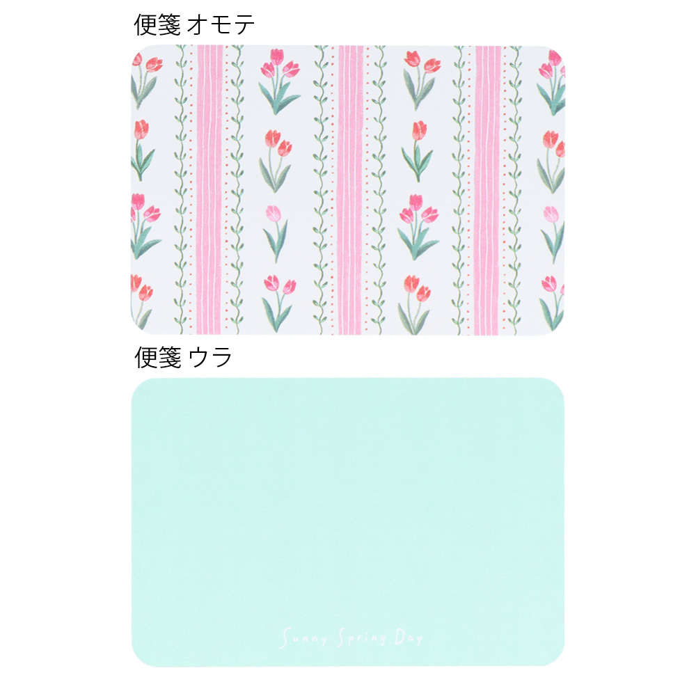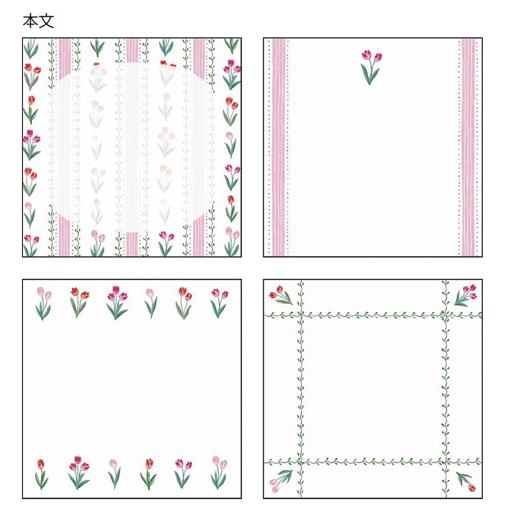赤やピンクのチューリップを並べたデザインのミニレターセット。