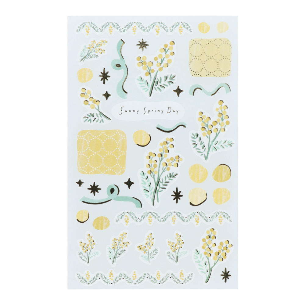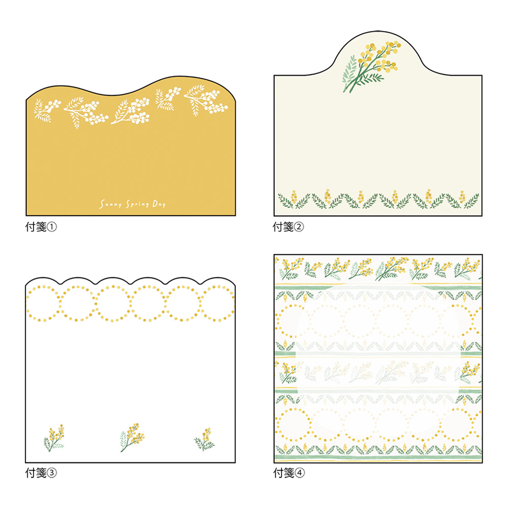 イエローでまとめた、ミモザの花デザインのブロック付箋。