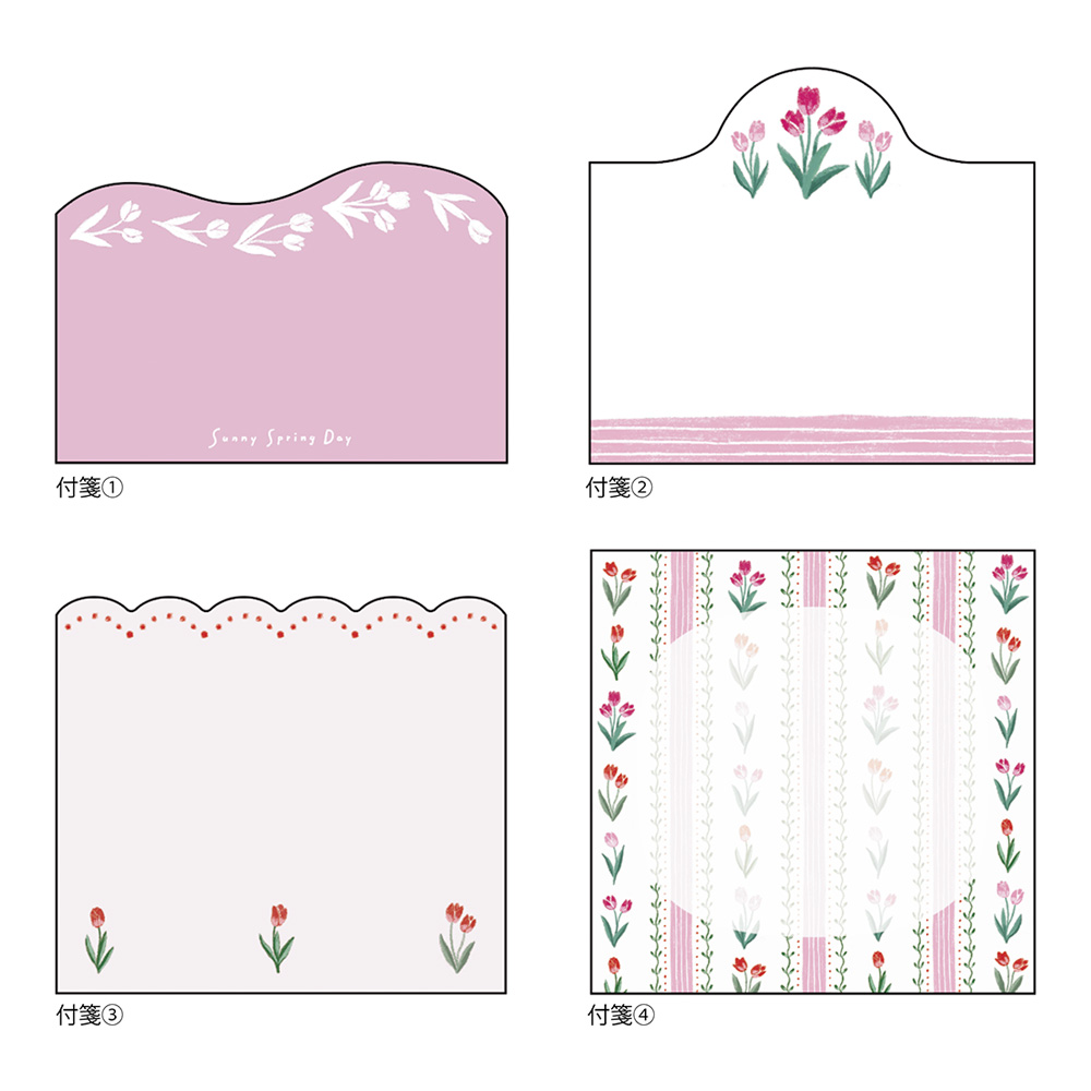 ピンクを中心にしたチューリップの花モチーフのブロック付箋はガーリーな印象。