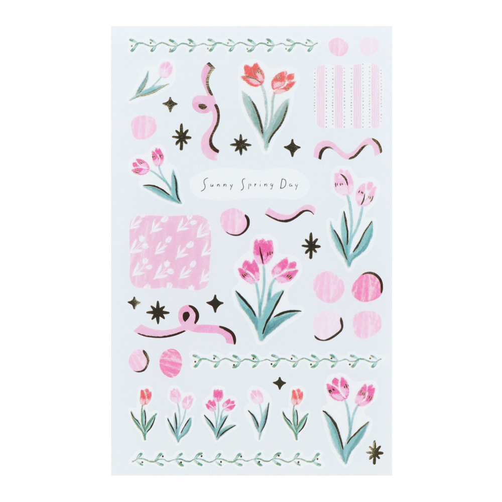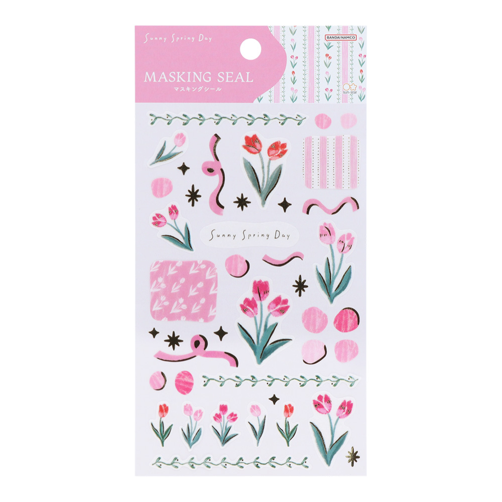 チューリップの花とピンクのリボンがかわいらしいマスキングシール。