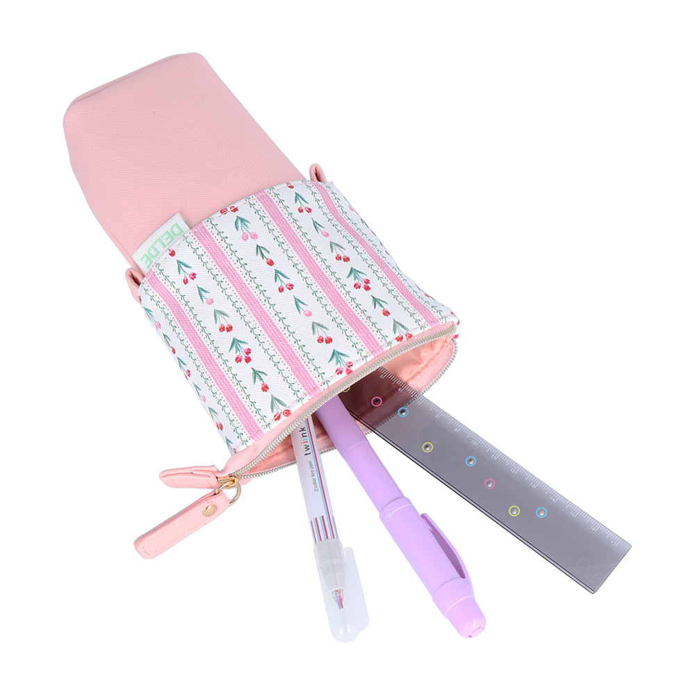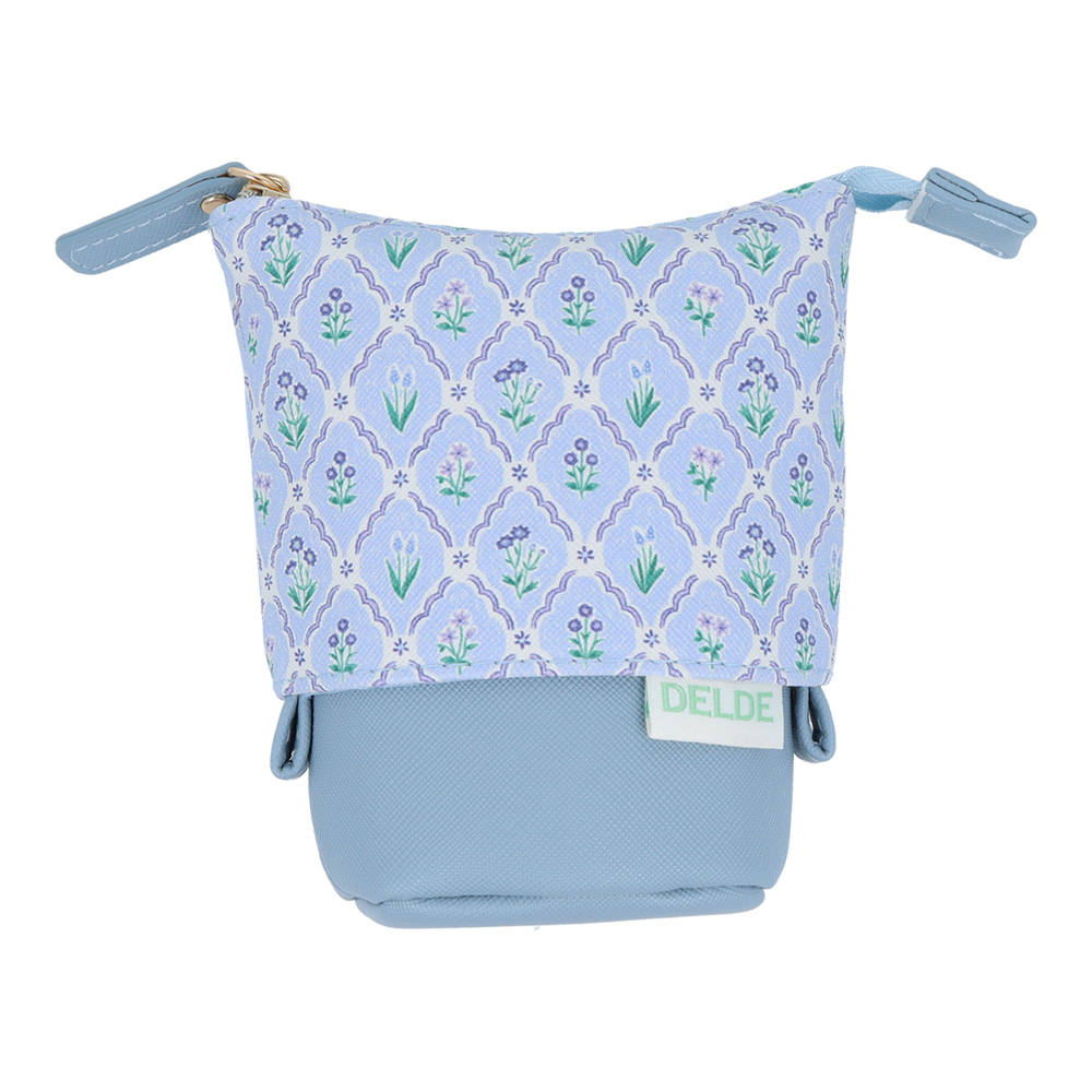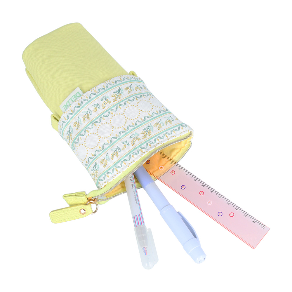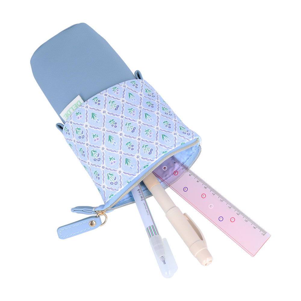 ポーチの上部分をスライドさせると、ペンスタンドに早変わりするスリムペンポーチDELDE。
