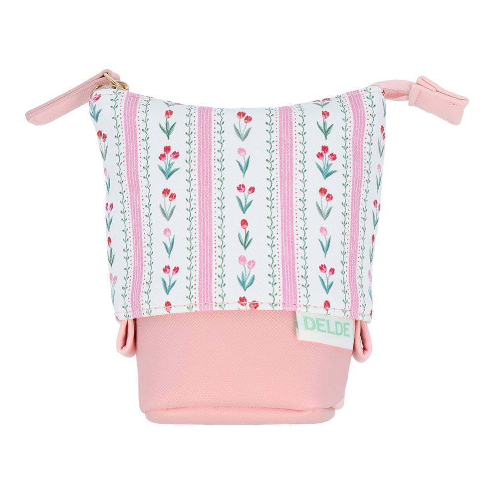 上部はチューリップの花が並ぶストライプ風デザインのペンポーチ。