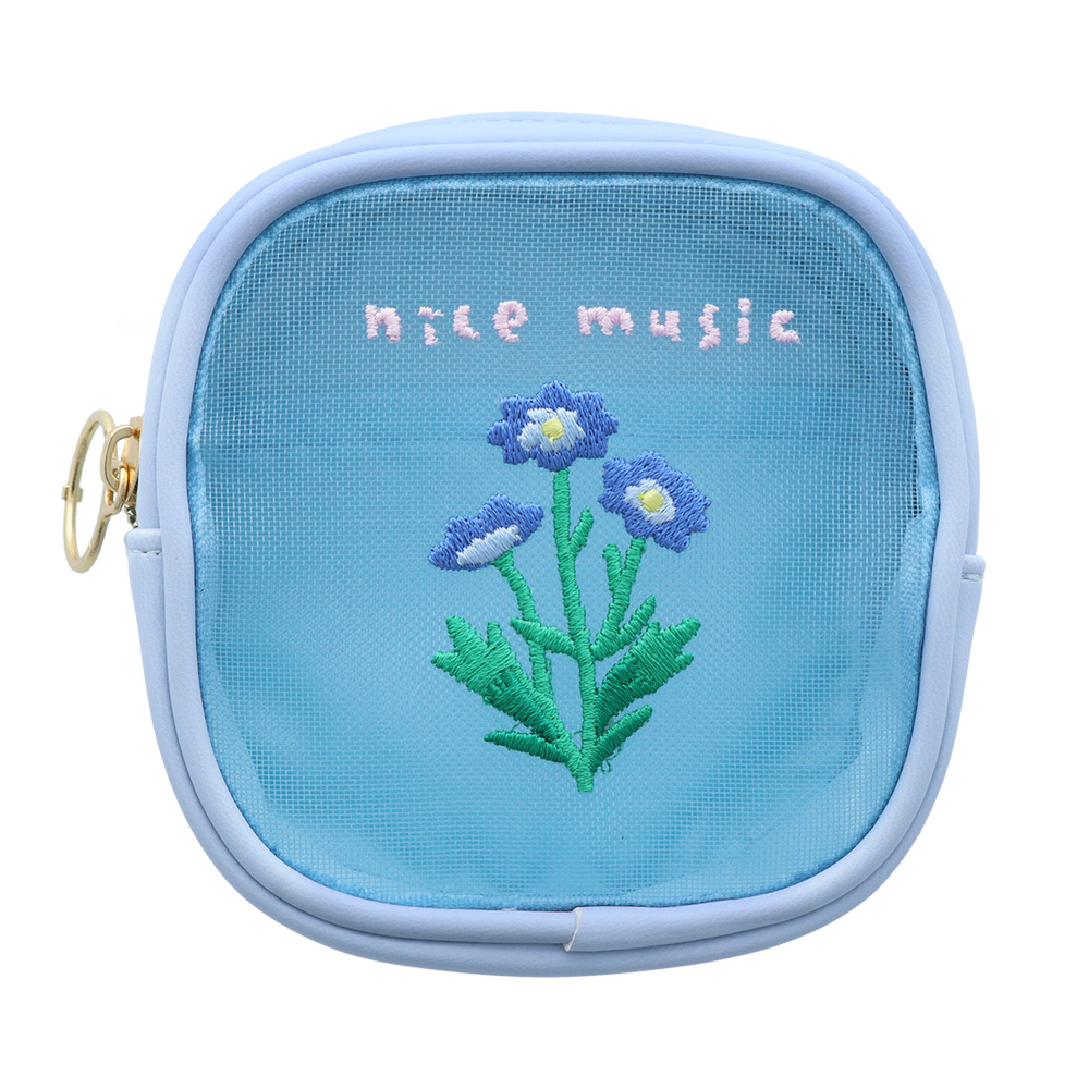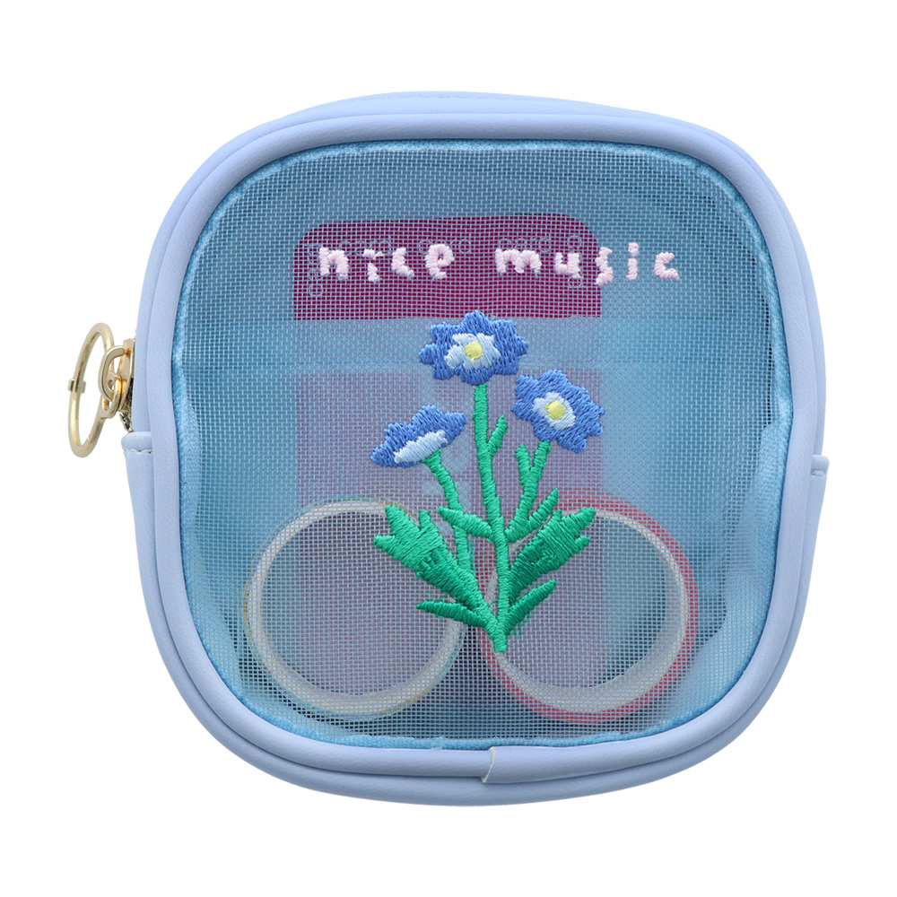 青いフラワーモチーフのペンポーチは、かわいいけれど大人っぽい雰囲気です。