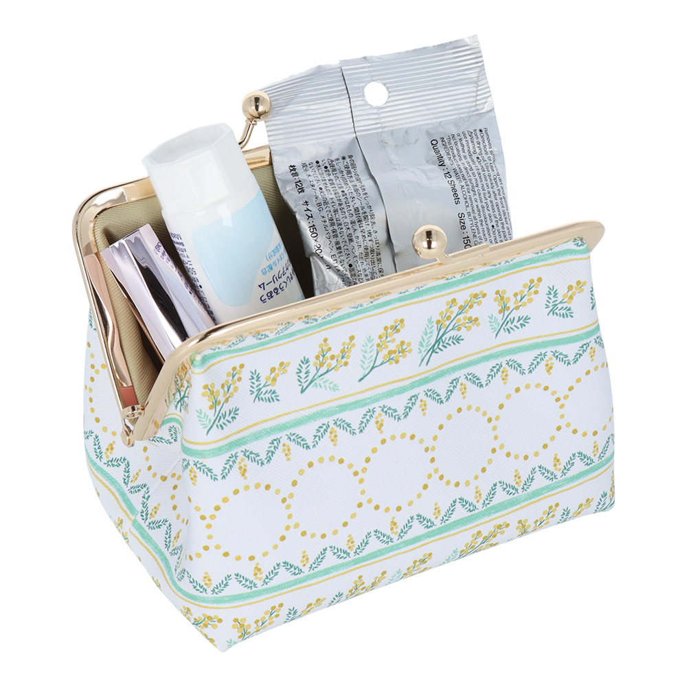 収納力あるがま口ポーチは、コスメグッズの持ち運びに便利。