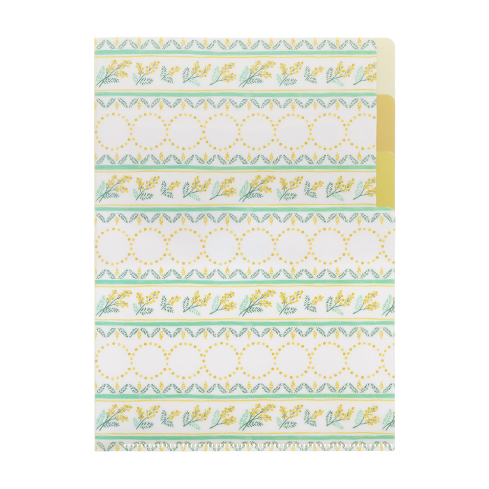 3つのポケットに分けられる、A5サイズのクリアファイル。
