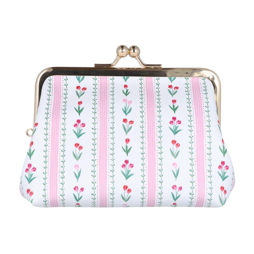 ストライプ状にチューリップが並ぶがま口ポーチ。