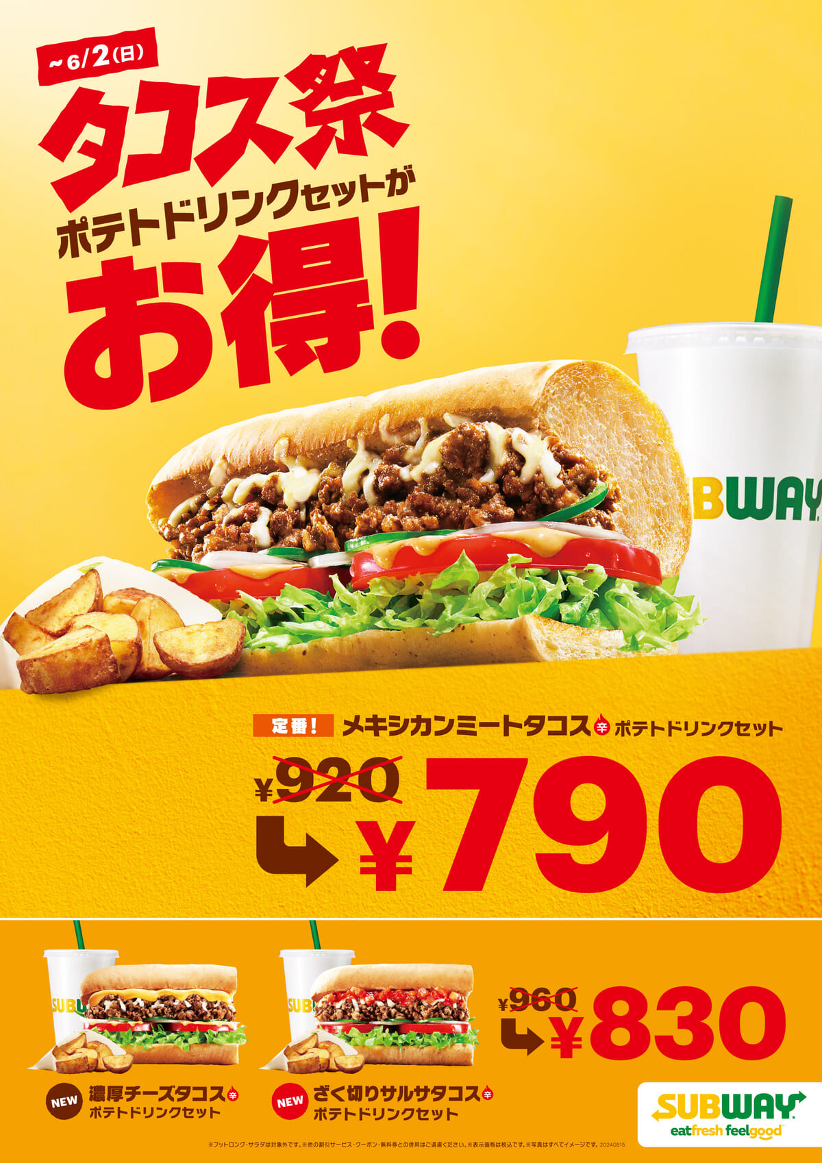 サンドイッチチェーン「サブウェイ」にて販売される人気の期間限定メニュー「タコスサンド」が2024年も登場!