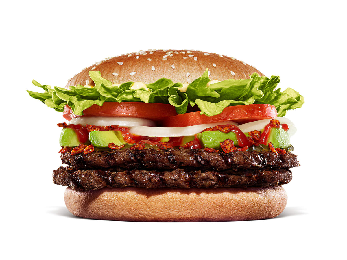 「ダブルメキシカン アボカドワッパー」は、直火焼きの100%ビーフパティを2枚重ねた、贅沢な「メキシカン アボカドワッパー」!