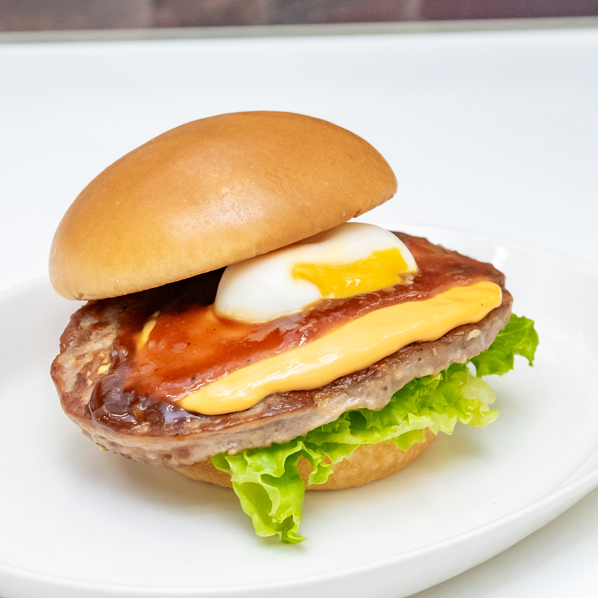 北海道チーズのコク、まろやかな半熟風たまご、国産牛100%使用のパティ、それぞれの旨みを照りやきソースが見事にまとめ上げており、食が進む贅沢な一品です☆