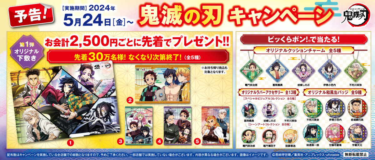 全国のくら寿司店舗にて2024年5月24日より開催される「鬼滅の刃」コラボキャンペーンの紹介でした☆