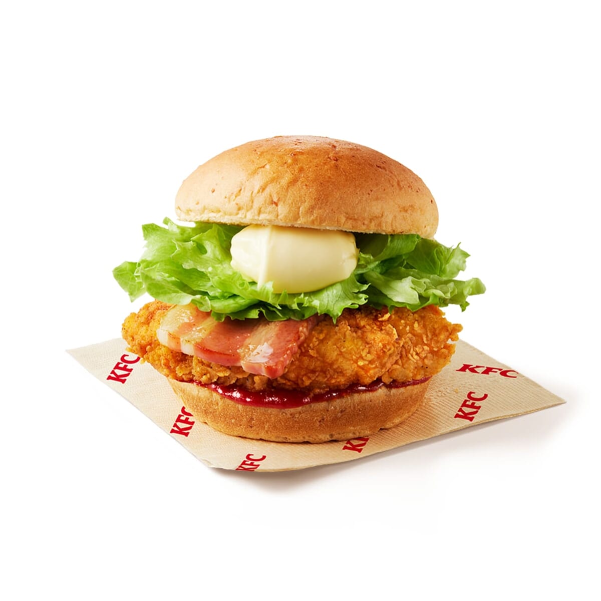 自慢の骨なしケンタッキーに厚切りのベーコンを合わせた「スモーキートマトソースのベーコンフィレバーガー」