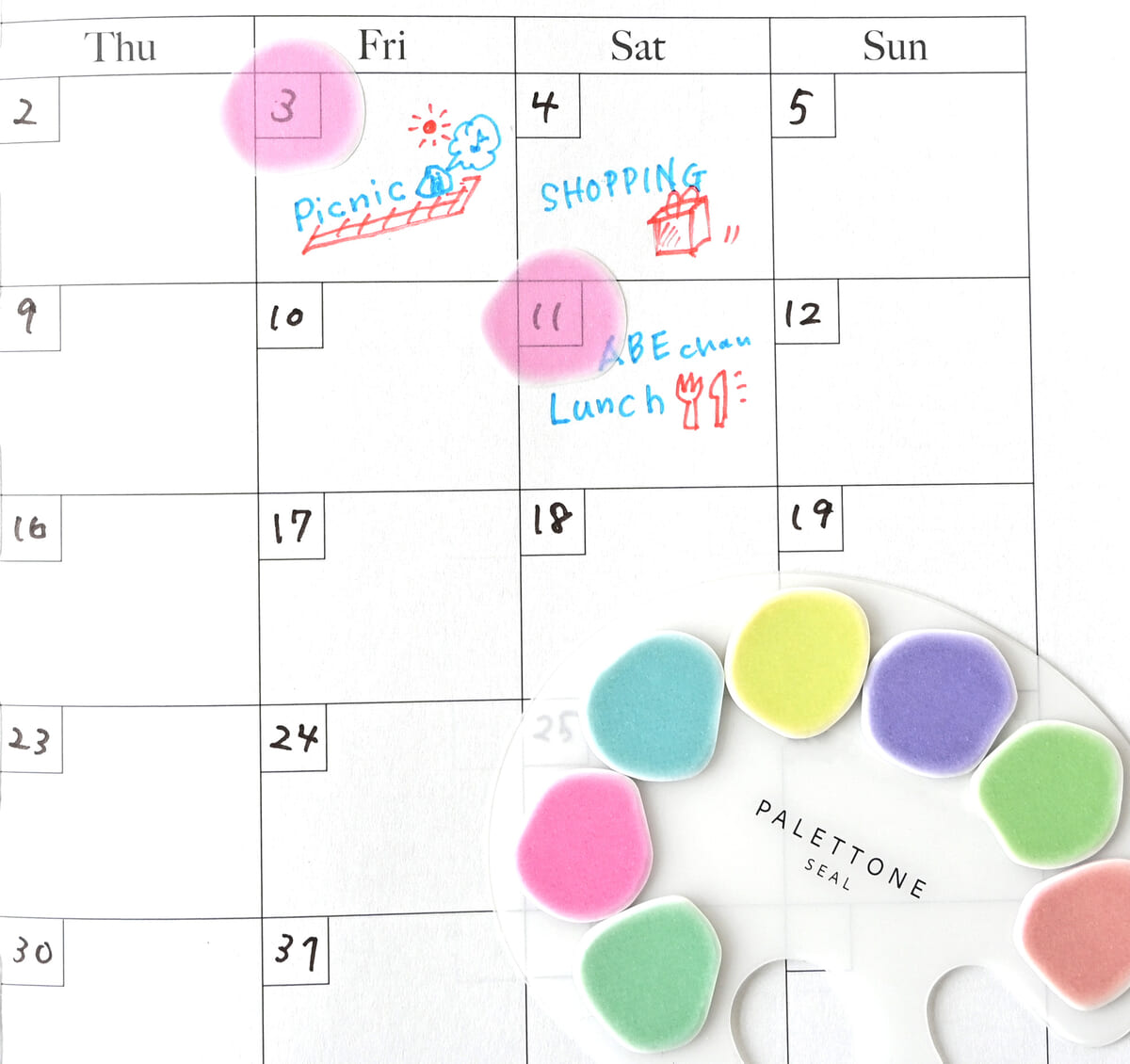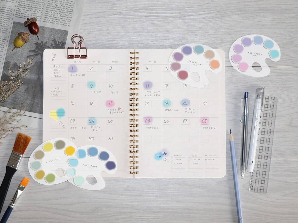 「PALETTONE(パレットーン)」は、まるでパレットの上に並んだ絵の具のように色を選びながら使いたくなるパレット風シール。