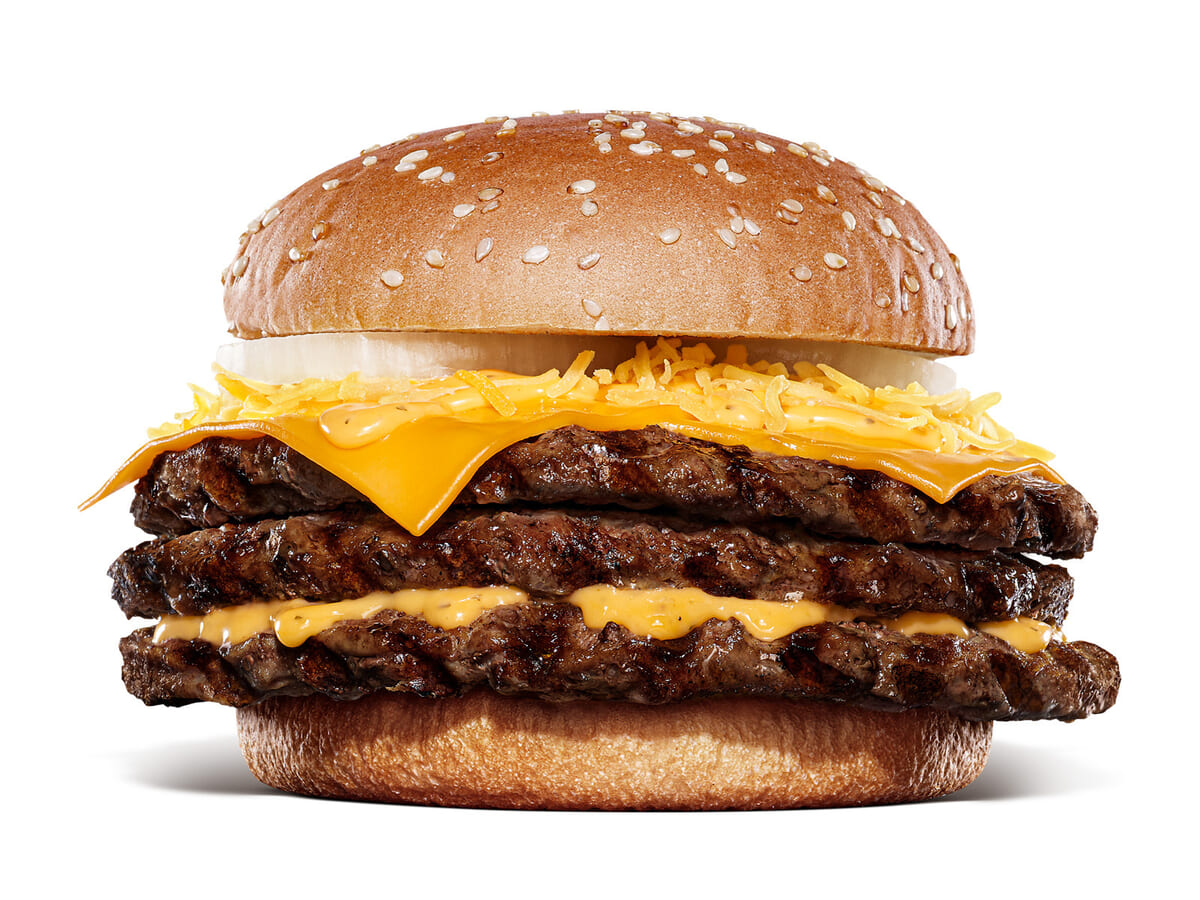 ビーフパティ3枚に4種類のチーズを贅沢に使用した、濃厚でリッチな旨さを楽しめるハンバーガーです。