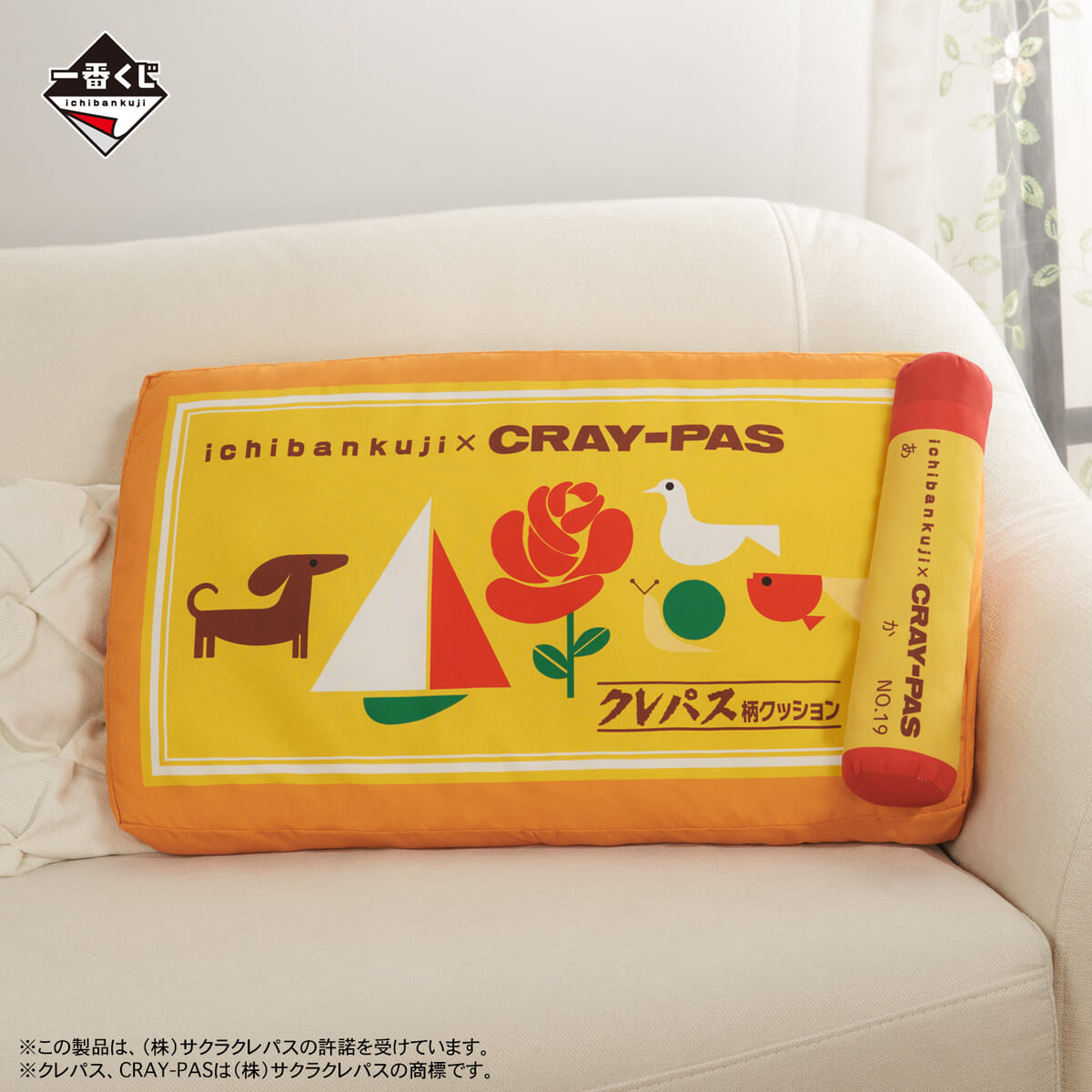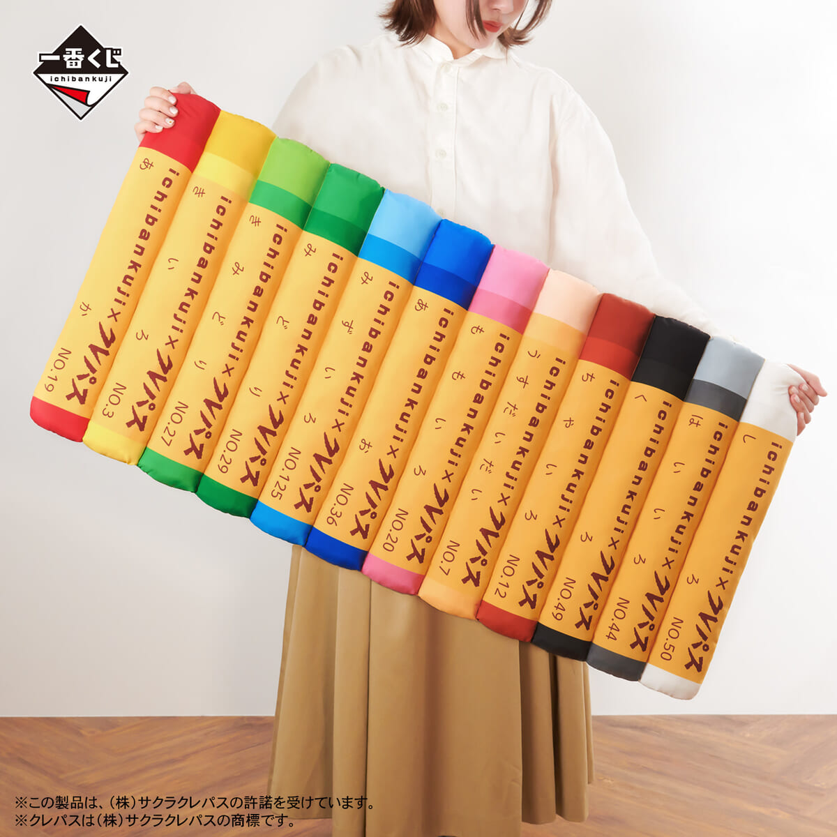 最後の1個を引くと手に入るラストワン賞には、12色クレパス柄クッションが登場!