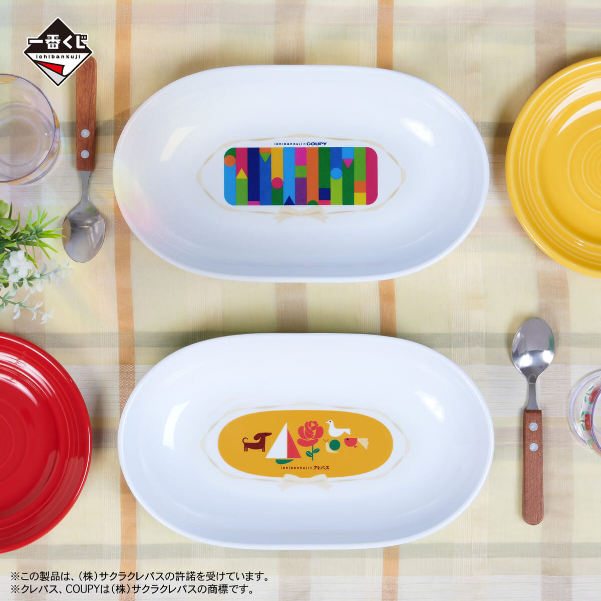 C賞は、大きめサイズでテーブルを彩る、クレパス柄かクーピー柄を選べるメラミンプレート。