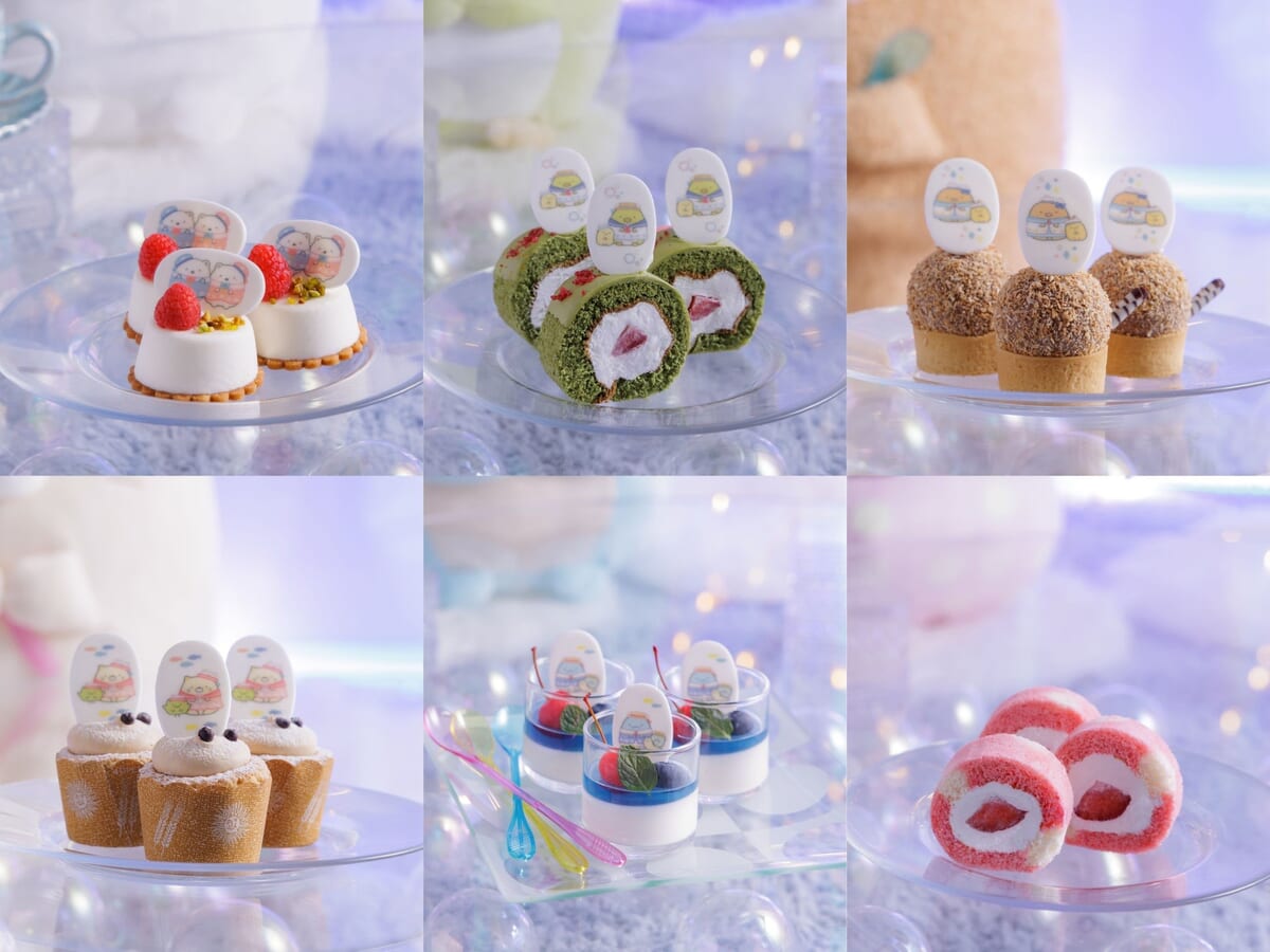 「すみっコぐらしスペシャルスイーツビュッフェ~しろくまのふるさとにあそびにいきました~」にて提供される「すみっコぐらし」のスイーツは全部で6種類。