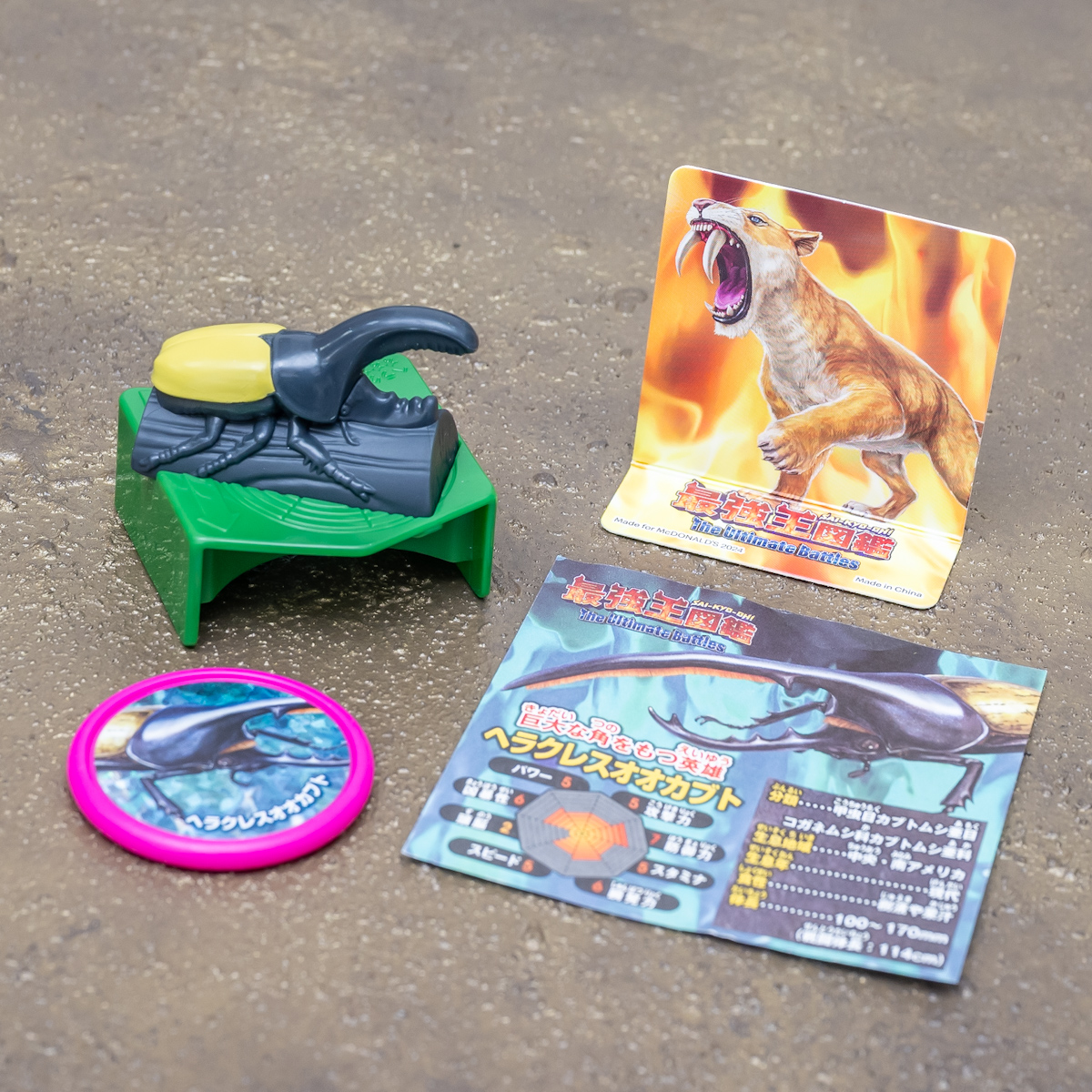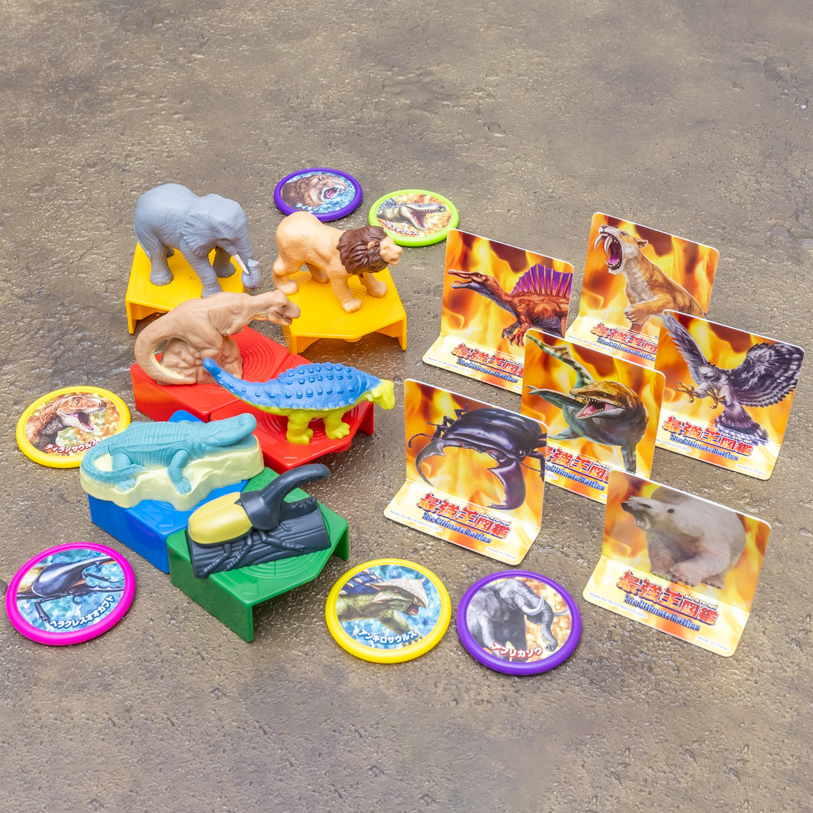 ハッピーセット「最強王図鑑」は生物のフィギュアと、きらりと輝くホログラム加工のディスクがセットになった全6種のおもちゃです!