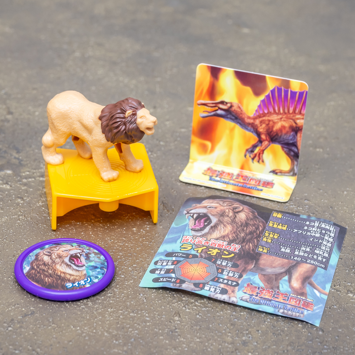 迫力あるライオンのフィギュアとディスクがセットになったおもちゃ。