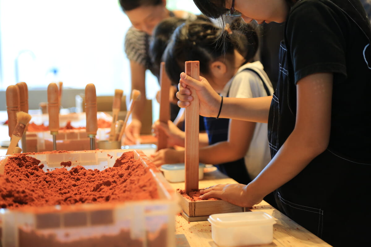 高岡で400年以上継承されてきた「生型鋳造法(なまがたちゅうぞうほう)」という砂を押し固めて鋳型を造型する伝統技法を用いて、ポケモンがデザインされた錫100%の箸置きづくりが体験できます。