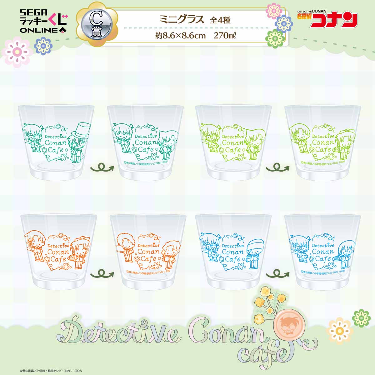 「名探偵コナンカフェ」のロゴをレイアウトした、ガラス製の「ミニグラス」