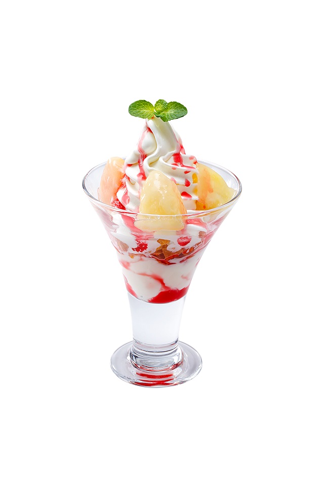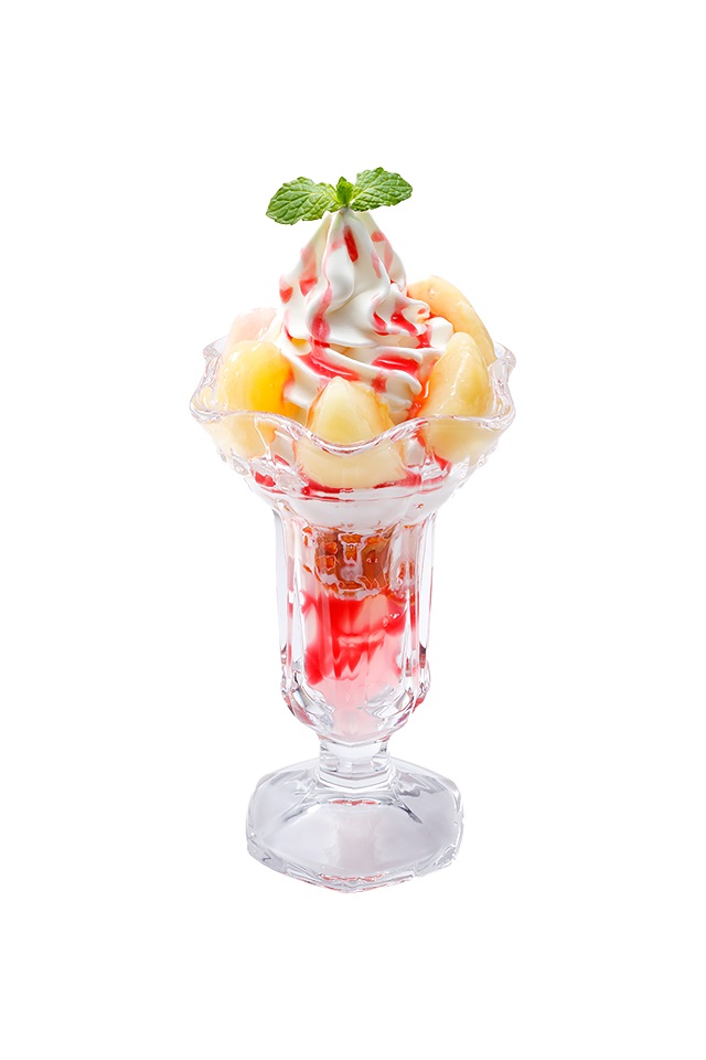パフェの中に香り高いピーチゼリーとナタデココを入れた、味・香り・食感の三拍子が揃ったパフェです!