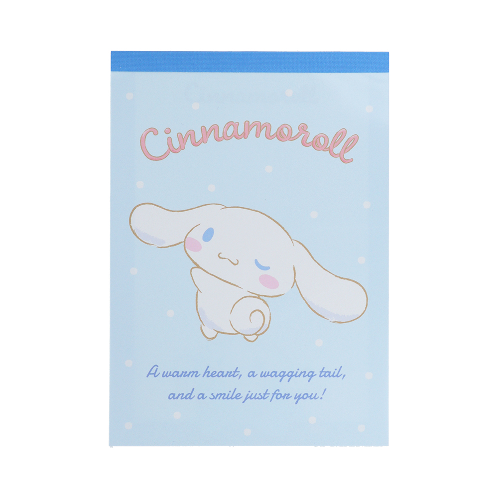 ウィンクしている表情とクルンと丸まった尻尾がキュートな「シナモロール」のメモ帳。