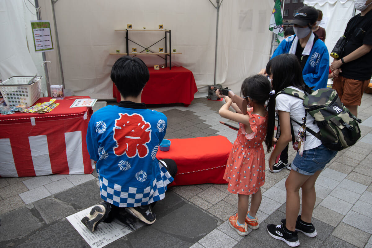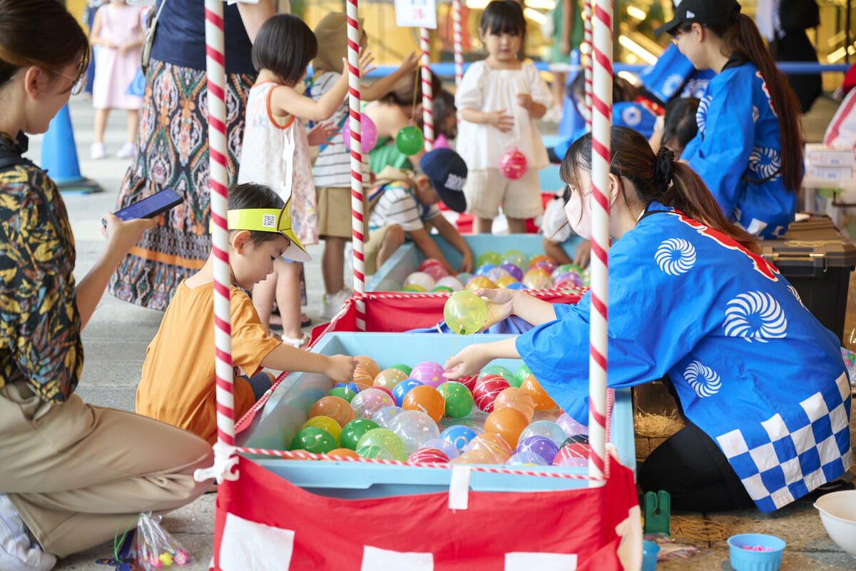 スーパーボールすくいやヨーヨー釣り、輪投げなど遊べる出店が並び、昔ながらの下町らしい夏まつりの雰囲気を楽しむことができます。