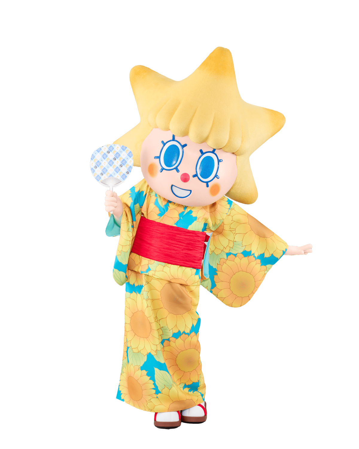 東京スカイツリー公式キャラクターの「ソラカラちゃん」が、夏らしいひまわり柄の浴衣姿で登場し、ゲストをお出迎えします。