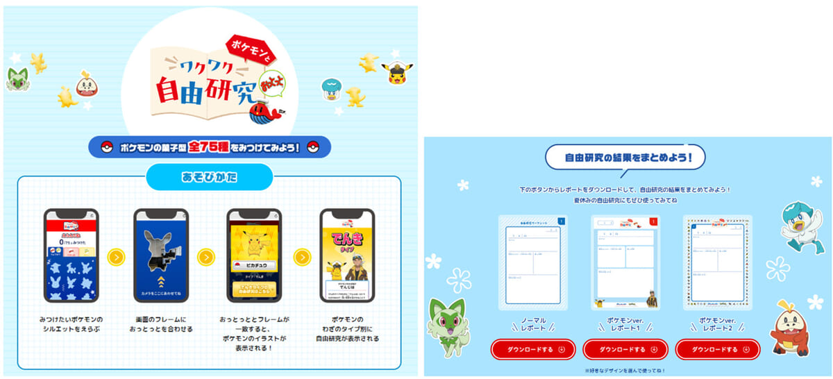さらに、全75種のポケモンを集めることができるブラウザコンテンツ「ポケモンとワクワク自由研究」も掲載。